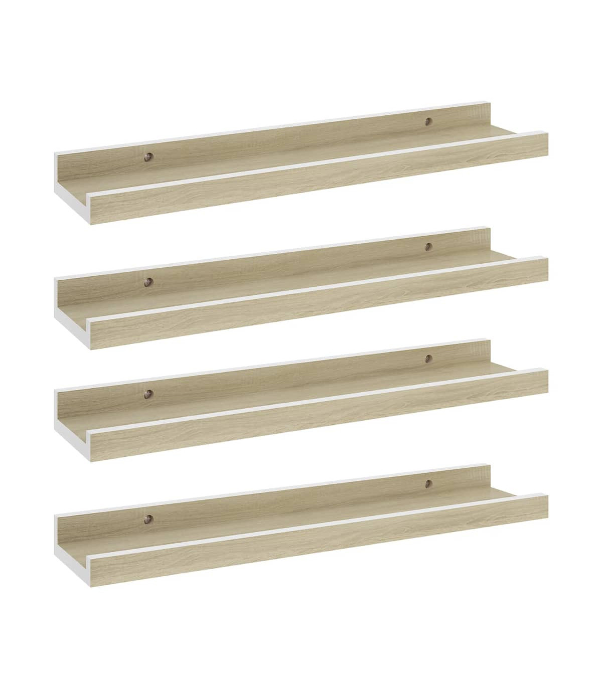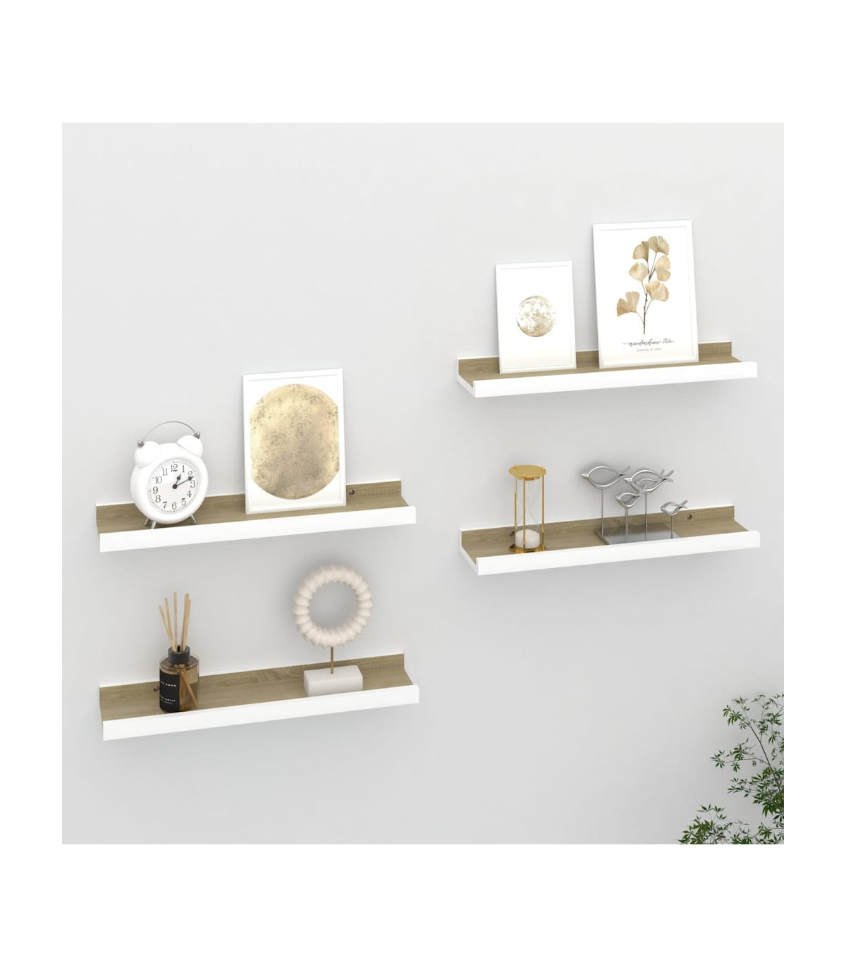 Wall Shelves 4 pcs White and Sonoma Oak 40x9x3 cm