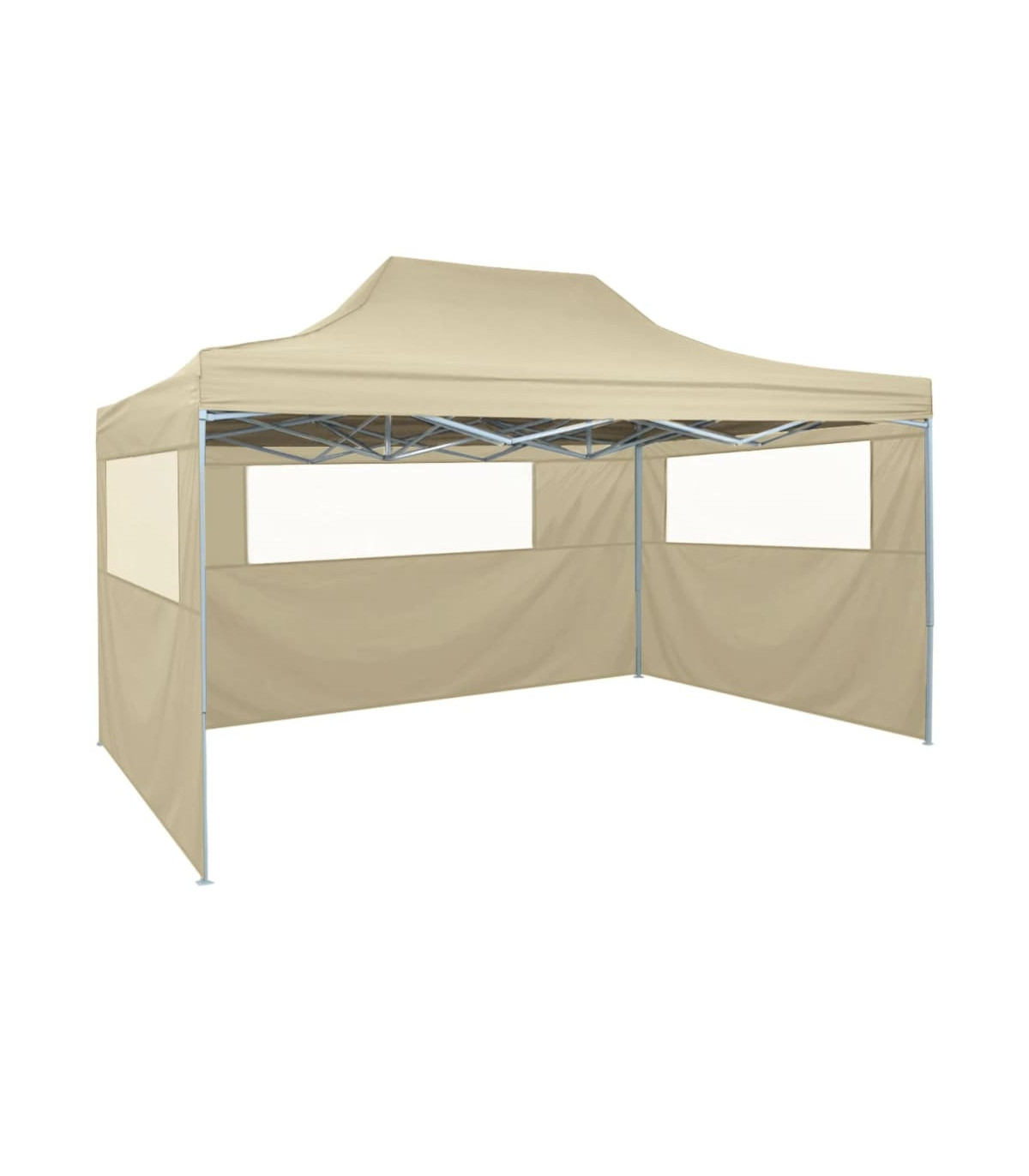 This foldable tent with 3 side walls will be ideal for a wide range of outdoor events, such as shows, weddings, parties, BBQs, festivals and so on. You can also install it in your backyard as a large sunshade for your family and friends. Made of heavy-duty, powder-coated steel, this pop-up party tent is extremely durable. The roof covering is made of oxford fabric with a PVC coating and is 100% waterproof and UV protective. The marquee is foldable for easy storage and transport. Installation accessories such as fastening ropes and ground pins are included in delivery. The garden marquee is easy to assemble. NOTE: This product should NEVER be used under bad weather, such as strong wind, heavy rain, snow, storm, etc.