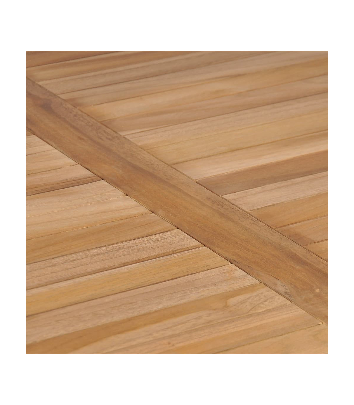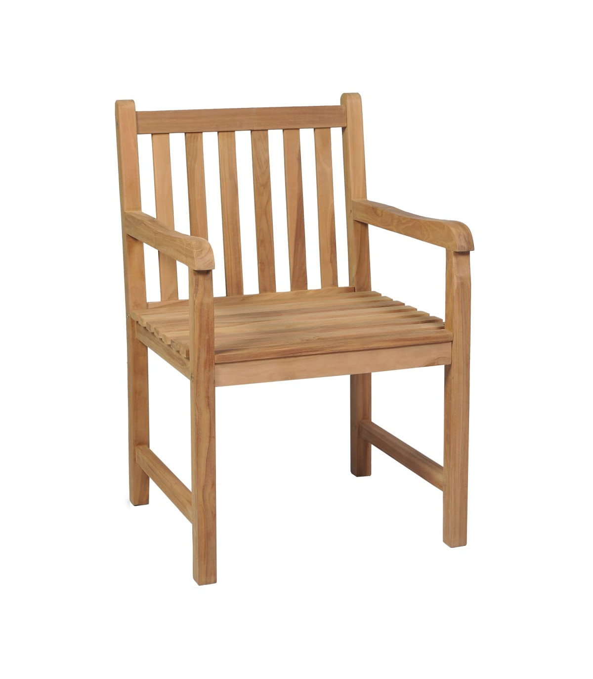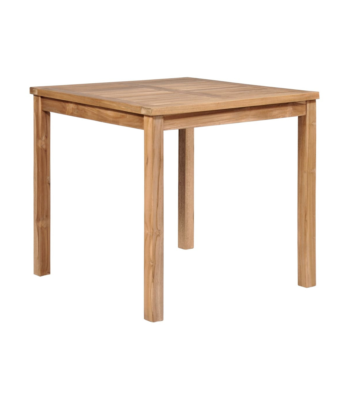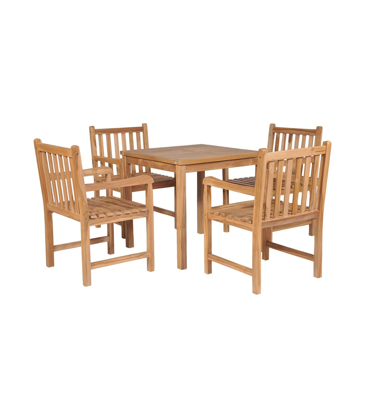 This solid wooden dining set with a water-based finish will add a touch of natural charm to your kitchen, garden or patio. Constructed from extremely durable teak hard wood, this piece of teak furniture has been seasoned, kiln dried and then fine sanded to give a very smooth appearance. Teak wood is known for its exceptional strength and weather resistance, making it far more suitable for garden furniture than any other kind of wood. Teak wood is the perfect choice if you want to purchase a long lasting piece of garden furniture. A beautiful water-based finish is applied to give the wood a warm colour. Thanks to the extra thick tabletop (3 cm) and big legs (5x5 cm), this solid wood table is very durable and can comfortably accommodate your guests. With its water-resistant feature and classic look, you can place this set of furniture anywhere around your sweet home – indoors or outside! Our dining set is easy to assemble. Delivery includes 1 table and 4 chairs.