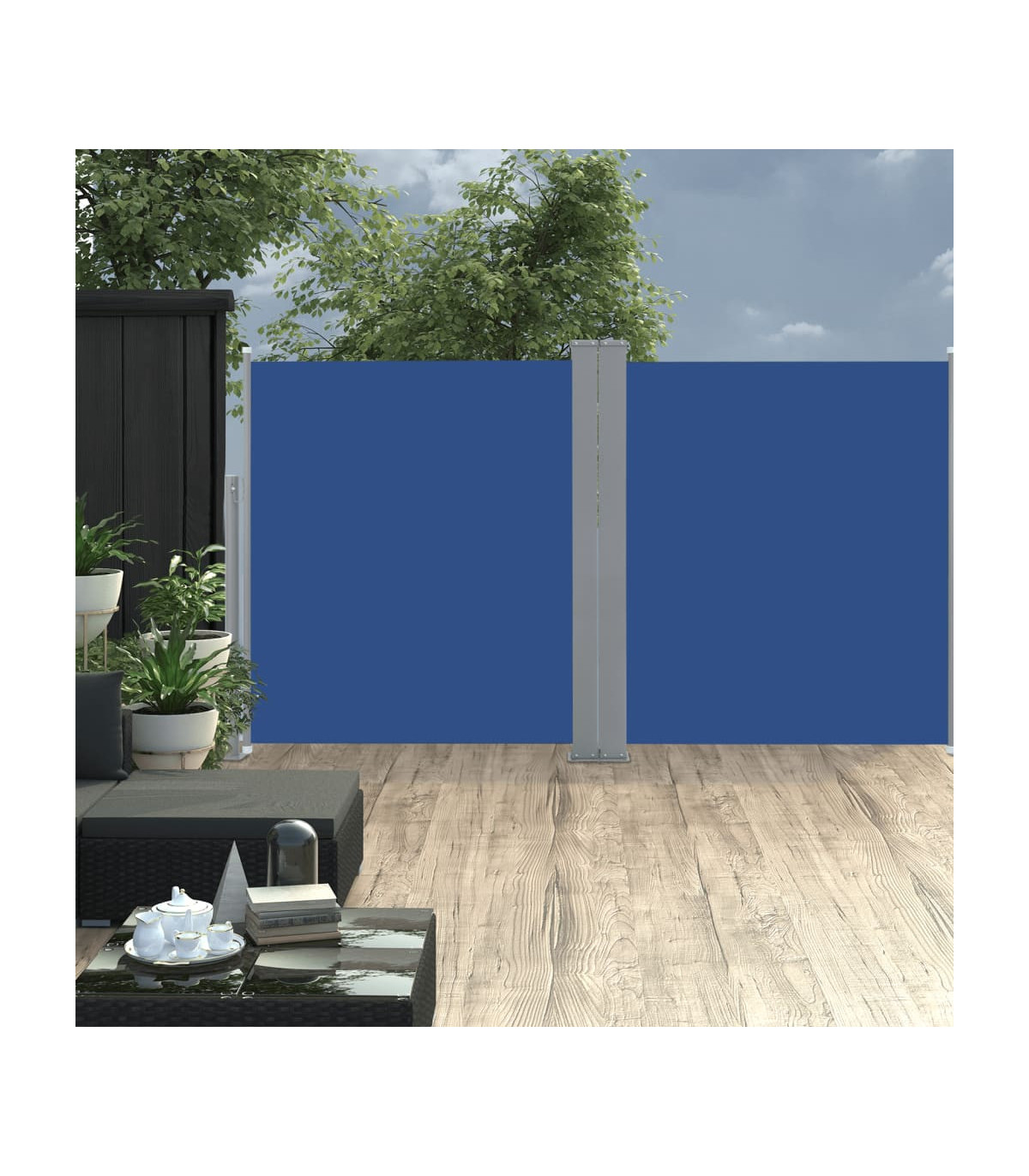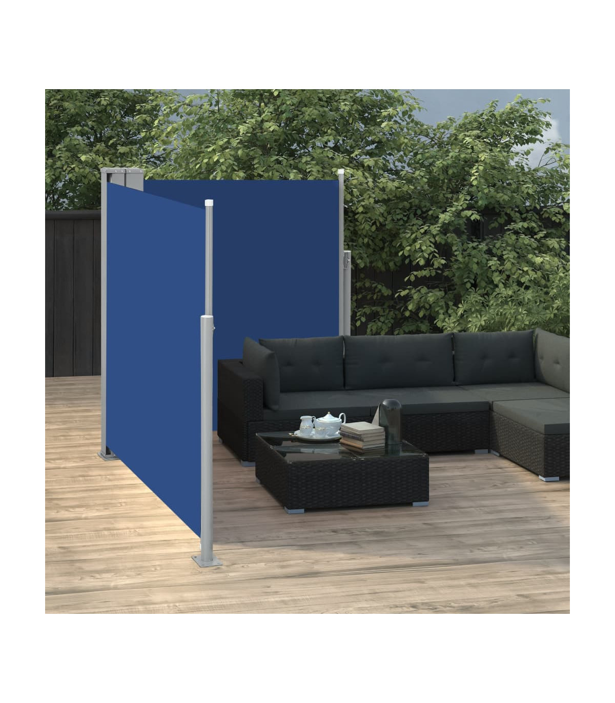 Our garden side awning, featuring a large screen, presents an effective way to deal with a constant wind and low-lying sun, while providing privacy. The simple yet stylish design makes it an ideal complement for your garden, patio, balcony, etc. The privacy screen has an automatic roll-back function and the width is adjustable to up to 600 cm. The outdoor screen is made of UV-proof, tear-resistant and water-resistant polyester fabric with a PU coating. Delivery also includes mounting accessories and 2 posts.