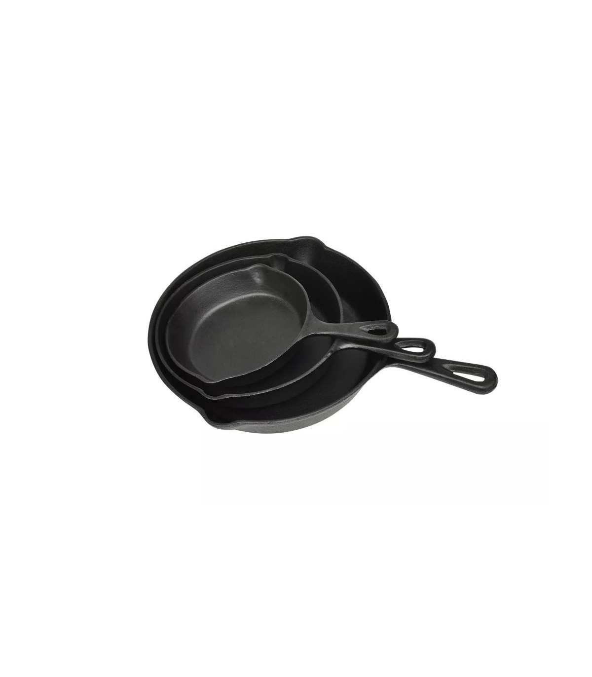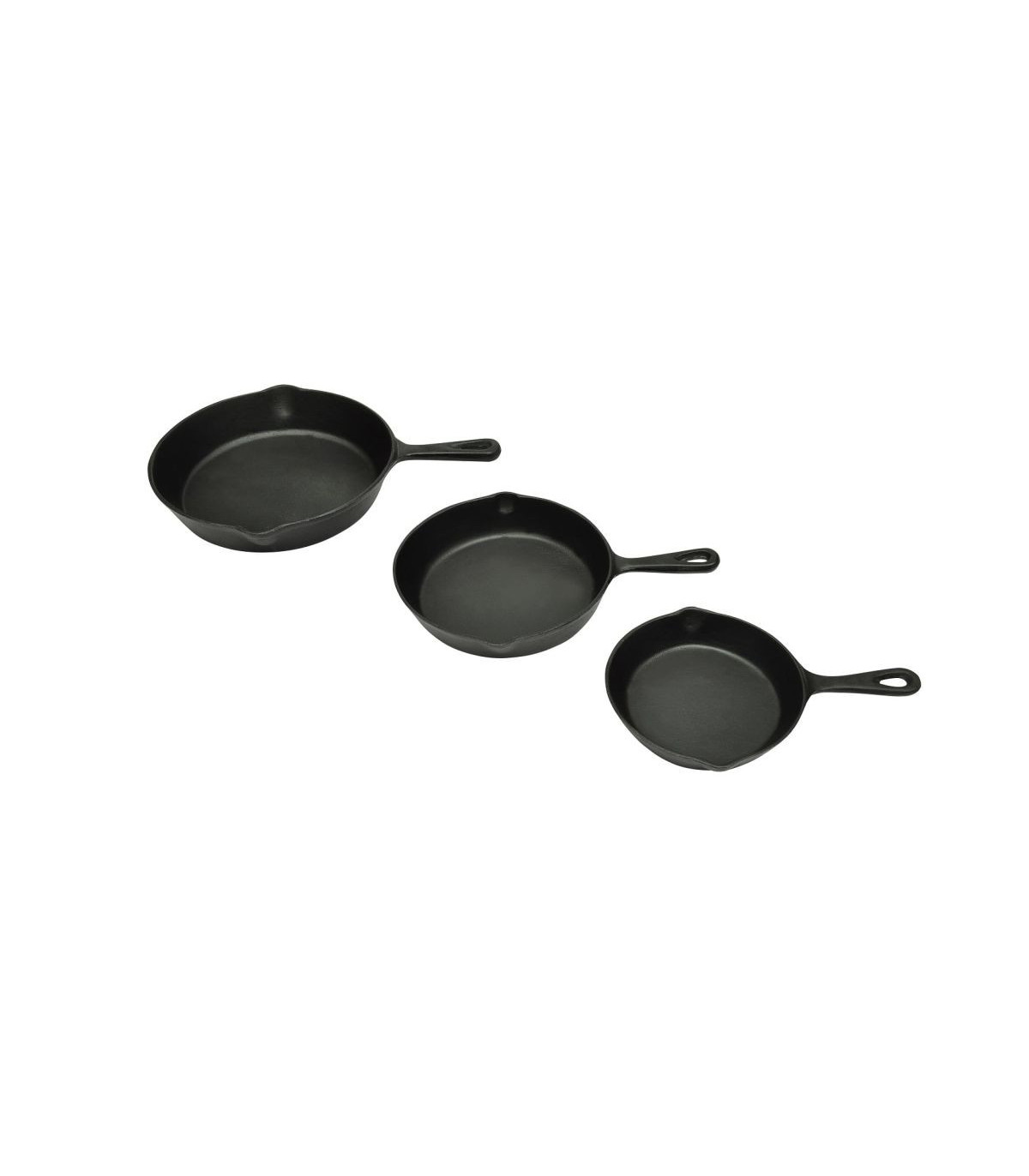 With our quality set of 3 pieces of extra large cast iron skillet/grill pans, you will find cooking a joyful experience! This pan set contains three cast iron pans of 17, 21 and 27 cm in diameter. They are perfect for home and camp cooking. The pans fit all types of hobs, including gas, electric, ceramic, halogen, solid fuel & induction cookers. They are also suitable for use on the BBQ. They have been pre-treated and will guarantee years of dependable service. These pans have smooth flat bottoms, making them ideal for making fried potatoes, scrambled eggs, hashbrowns, steaks, sausages, etc. The cast iron features a non sticky surface and is heat conducting. For maintenance, make sure to follow the care instructions and tips. It should be cleaned with hot water and without detergent. It is not dishwasher-friendly. Delivery includes 3 cast iron skillet/grill pans.