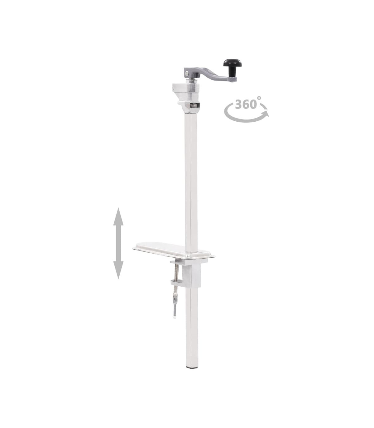 This professional can opener is an all-round nifty kitchen gadget that can effortlessly and quickly open canned food cans. Made of aluminum and strong stainless steel, the can opener is exceeding stable and durable, making it suitable for both home and professional use, including hotels, restaurants, schools, events and etc. With the included fixing clamp, it can be easily attached to the table or worktop and help open various cans of up to 55 cm high quickly and easily. The 360-degree rotatable handle provides maximum flexibility to meet different needs.