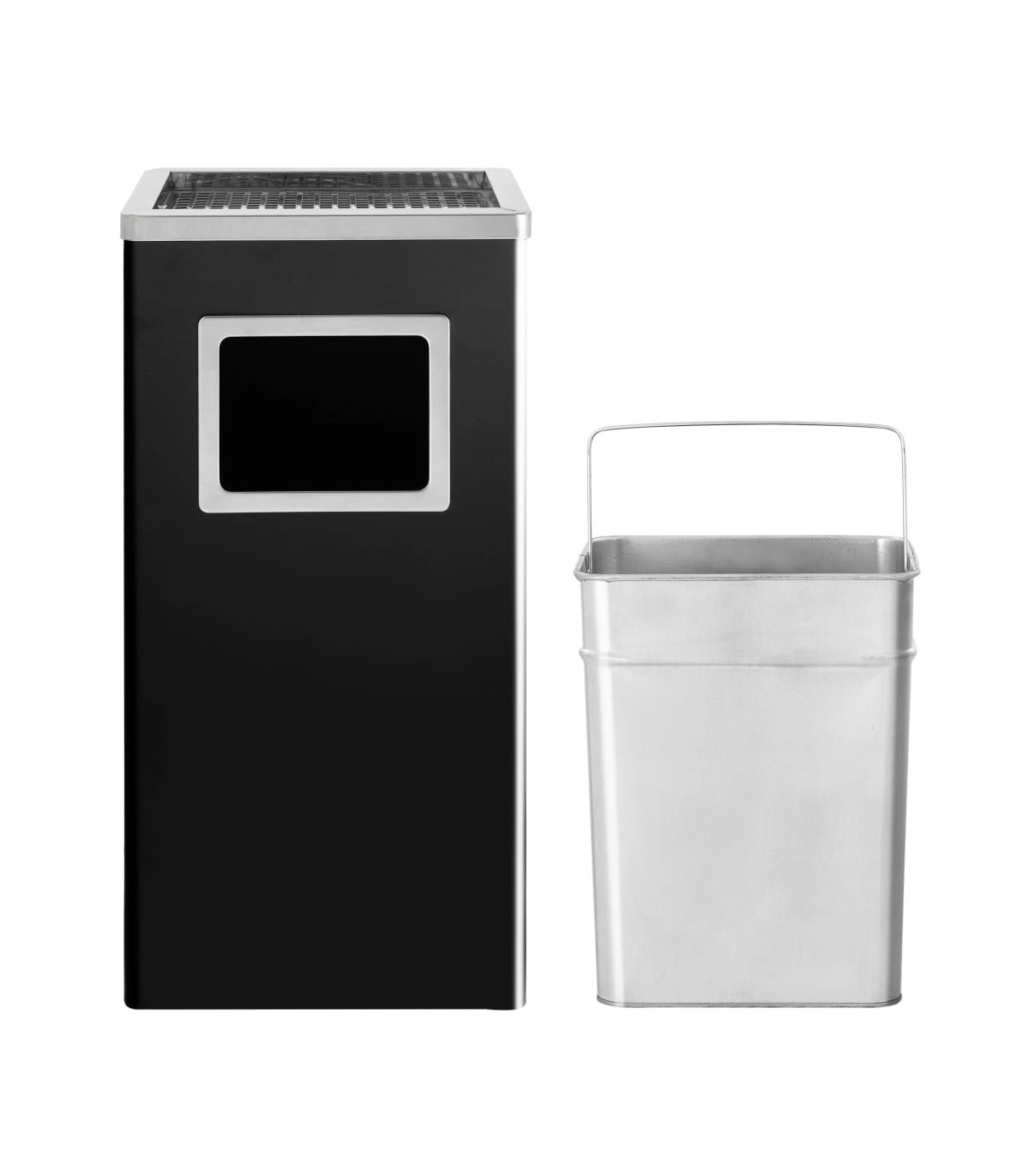 Characterized by the elegance of steel and an ashtray design, our high quality ashtray dustbin not only has a sophisticated design, but also scores with its functionality. Our bin has a large-capacity recycling waste barrel and also includes an ashtray at the top, which can be used both indoors and outdoors, like in the hotel, restaurant, in front of the house, offices, as well as other public places. Made of powder coated steel, it is sturdy and not easy to deform and rust, which can ensure long service life. You can easily empty the ashtray with the removable inserts. Inner barrel can be taken out with great ease for you to clean and wash it.