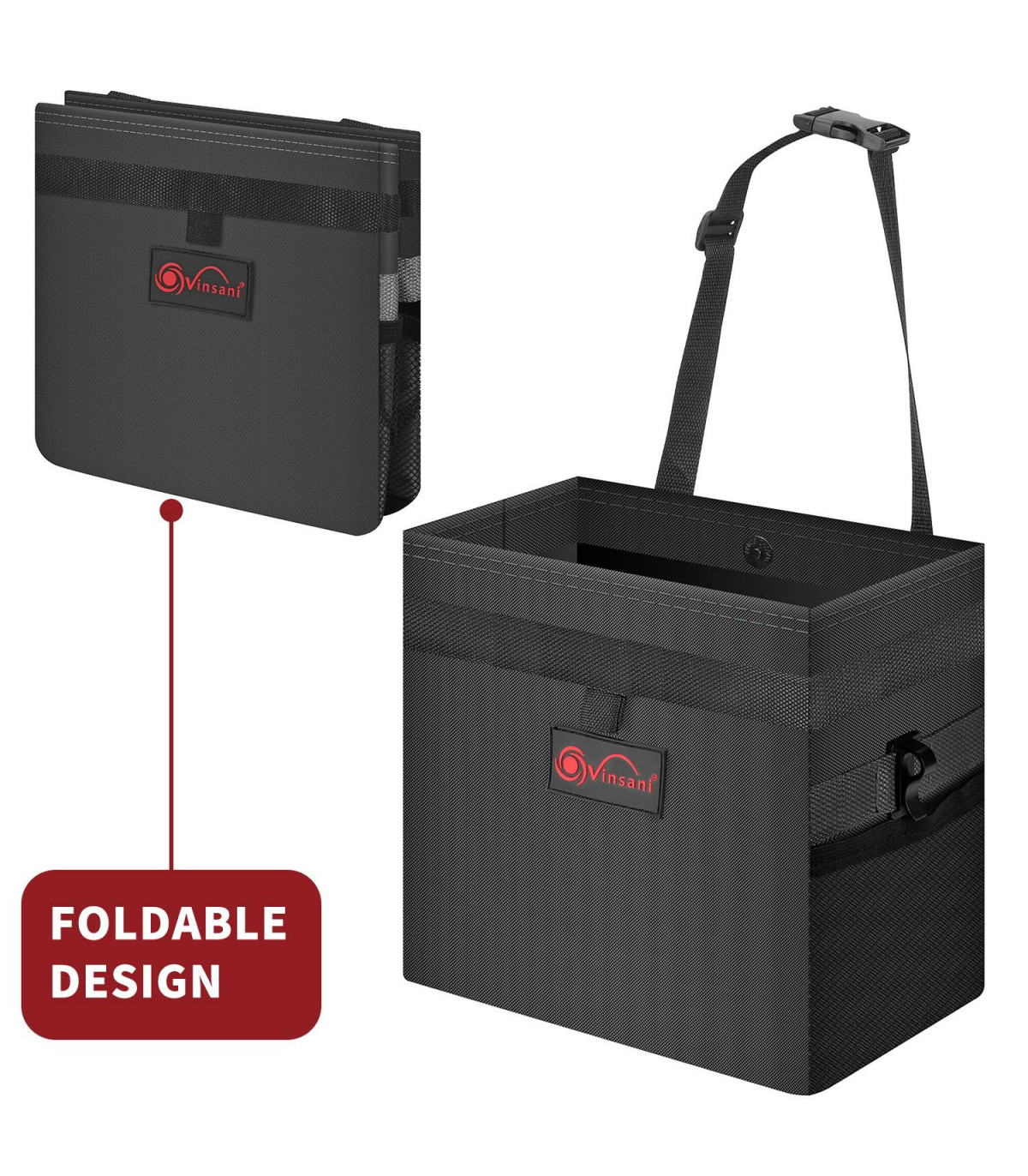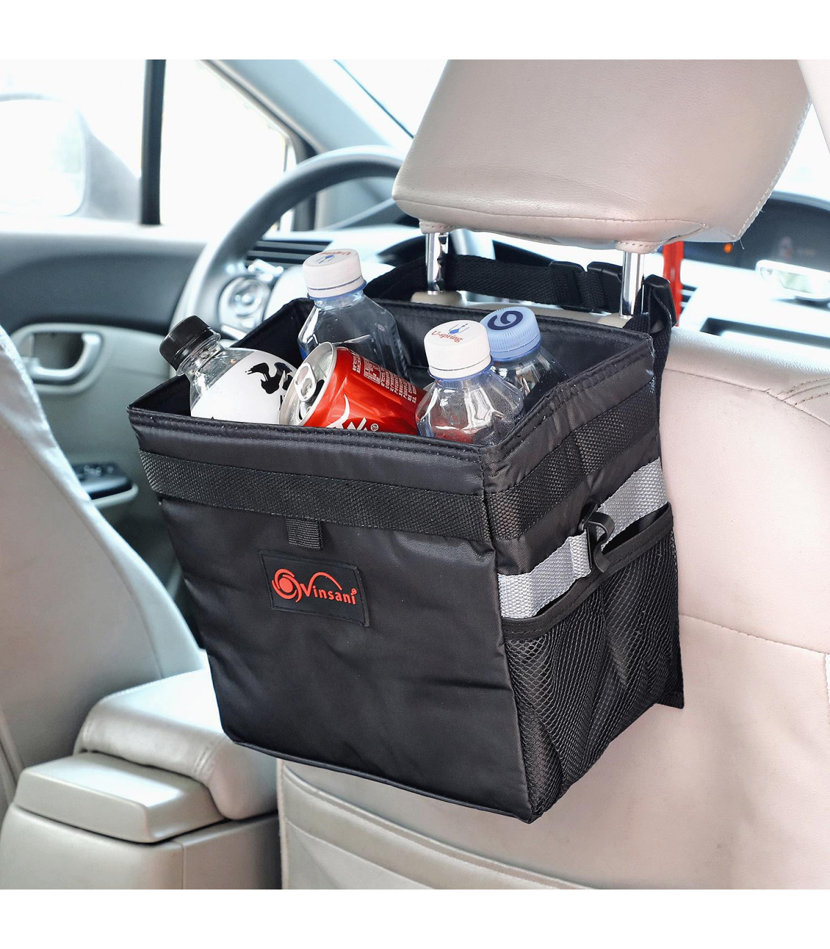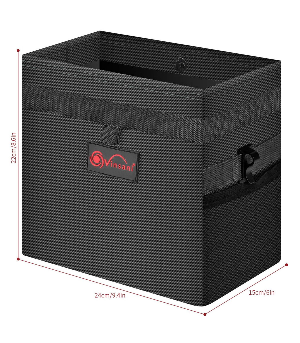 CLUTTER-FREE CAR: Do you have a lot of clutter in your car and are tired of it? This car rubbish bin will help keep your car tidy and organised. WELL-DESIGNED: This car bin boasts several great design features: waterproof canvas, solid & sturdy sidewalls, strong and adjustable straps, magnetic buttons, mesh pockets and a bag fixing hook. It can be easily folded into a compact size for convenient storage when not in use. MULTIFUNCTIONAL: Our Vinsani Car Bin doubles as a storage bin for kids' toys, beverages, tools, car manuals, route maps, and other trip essentials, as well as important papers. It could also be used as a cooler bag for travel. The insulated waterproof and leakproof lining retain ice to keep drinks and food cold for hours. SPACE SAVER: This car bin takes up minimal room in the car because it has an adjustable strap and may be hung on the front or rear of a chair or placed on the front or back passenger seat floor. A practical and convenient solution in keeping organized whether traveling or on vacation. PRODUCT DIMENSIONS: LARGE: L17 x W29.5 x H24.5 cm (6.7 x 11.6 x 9.6 inches) MEDIUM: L15 x W24 x H22 cm (6 x 9.4 x 8.6 inches)