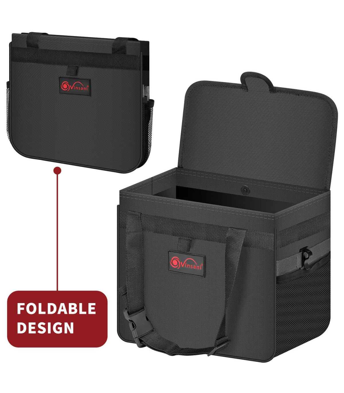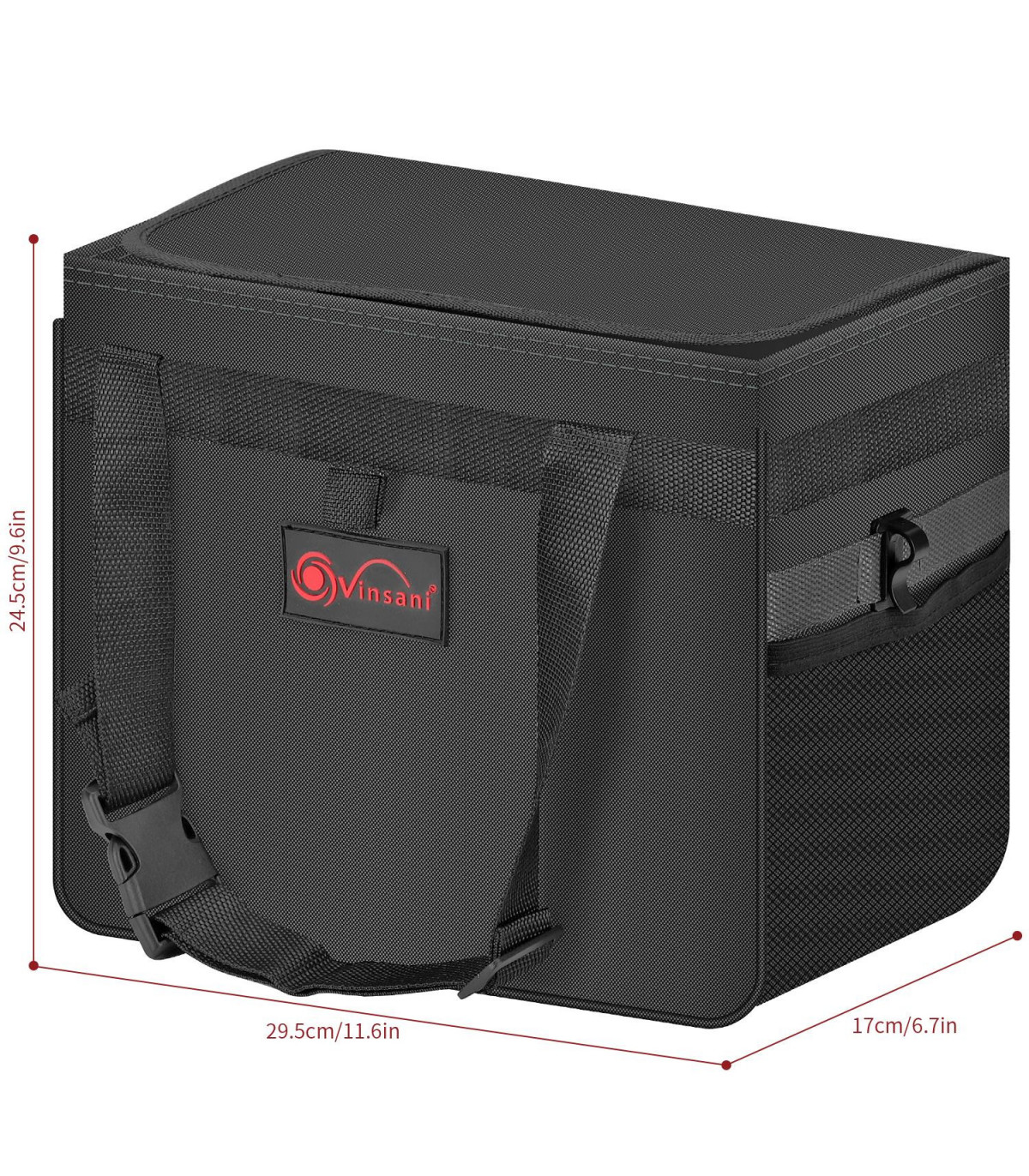 CLUTTER-FREE CAR: Do you have a lot of clutter in your car and are tired of it? This car rubbish bin will help keep your car tidy and organised. WELL-DESIGNED: This car bin boasts several great design features: waterproof canvas, solid & sturdy sidewalls, strong and adjustable straps, magnetic buttons, mesh pockets and a bag fixing hook. It can be easily folded into a compact size for convenient storage when not in use. MULTIFUNCTIONAL: Our Vinsani Car Bin doubles as a storage bin for kids' toys, beverages, tools, car manuals, route maps, and other trip essentials, as well as important papers. It could also be used as a cooler bag for travel. The insulated waterproof and leakproof lining retain ice to keep drinks and food cold for hours. SPACE SAVER: This car bin takes up minimal room in the car because it has an adjustable strap and may be hung on the front or rear of a chair or placed on the front or back passenger seat floor. A practical and convenient solution in keeping organized whether traveling or on vacation. PRODUCT DIMENSIONS: LARGE: L17 x W29.5 x H24.5 cm (6.7 x 11.6 x 9.6 inches) MEDIUM: L15 x W24 x H22 cm (6 x 9.4 x 8.6 inches)