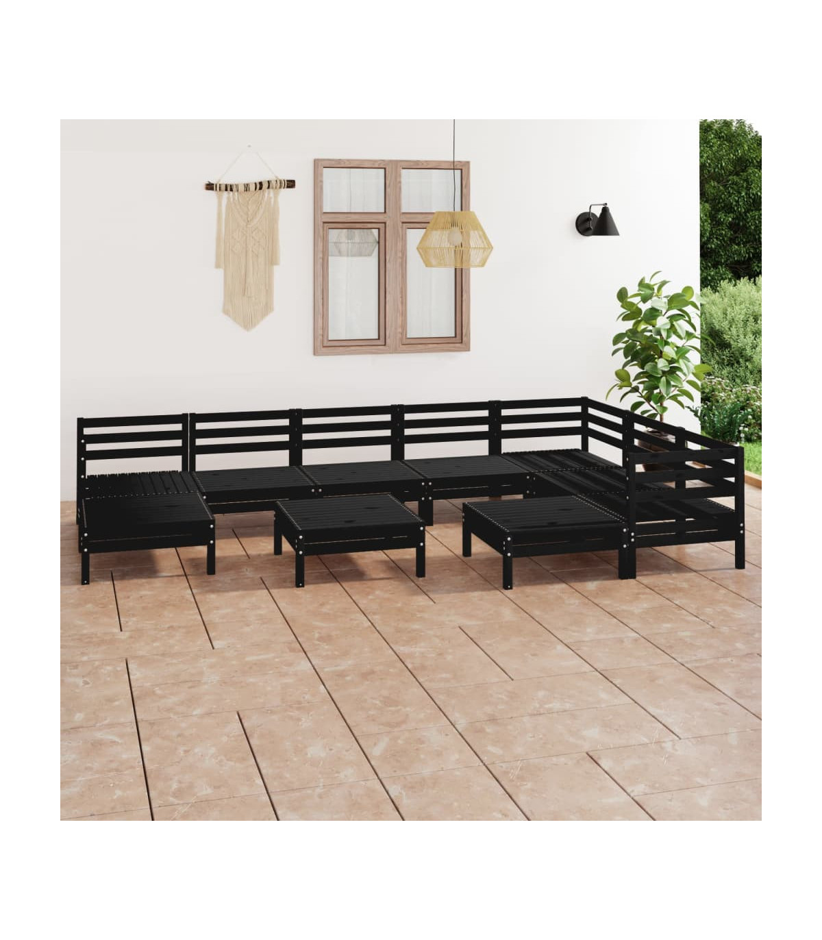 10 Piece Garden Lounge Set Solid Pinewood Black