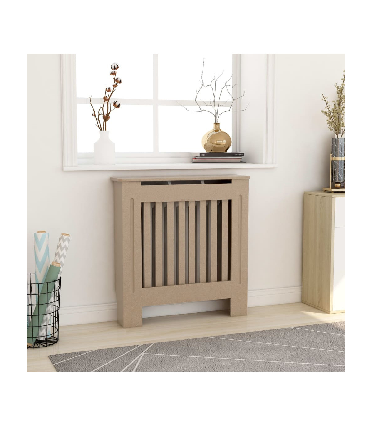 This radiator cover makes a stylish and practical addition to your living room. This radiator cover cabinet is made of MDF, sturdy and durable. It features a modern slatted design, making it suitable for any decor. The shelf provides ample space for placing your books, photo frames, ornaments, etc.