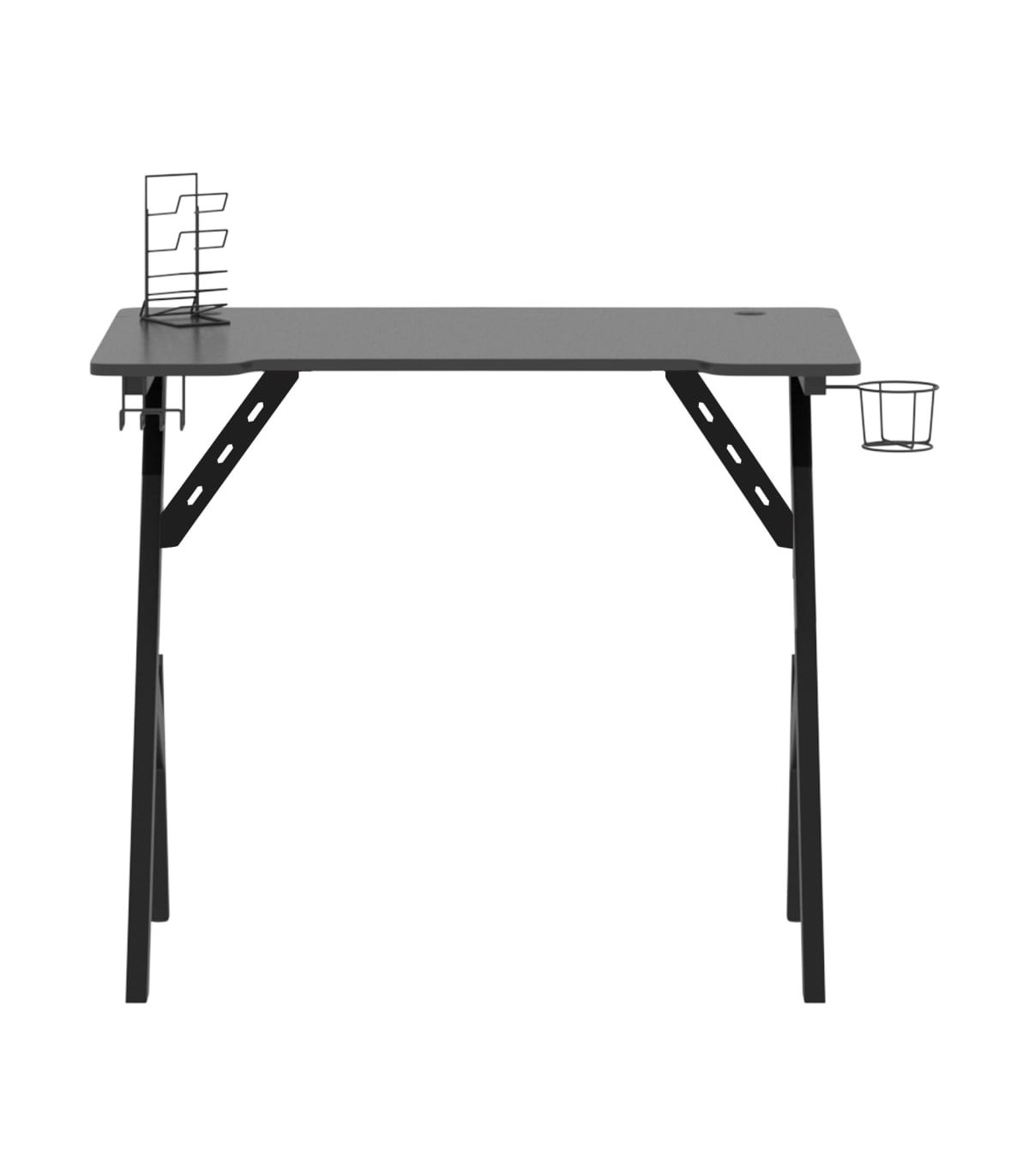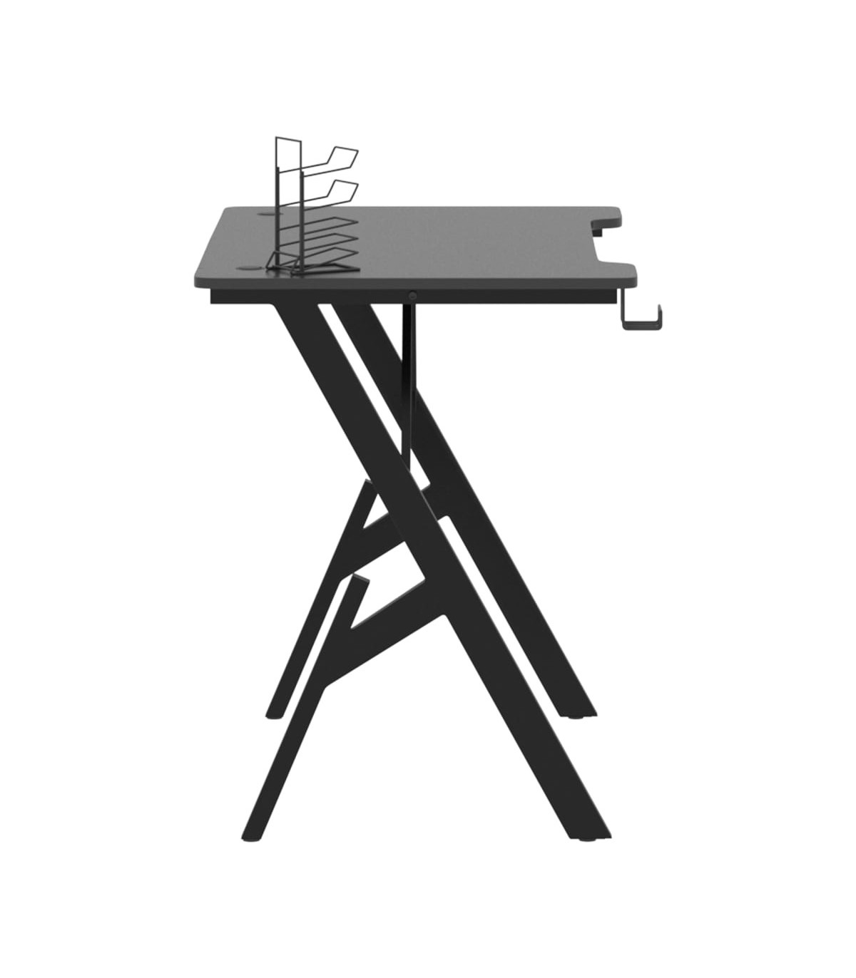 This gaming desk guarantees your concentration and comfort while playing or working. The streamlined ergonomic design offers a perfect gaming posture, helping you game longer and stronger! This computer desk includes an earphone rack and controller rack, which can hold your earphones right at your fingertips. It also has a cup holder to keep your drinks. It provides massive space for your gaming monitors, PC, gaming keyboards and other gaming gear. Additionally, the iron Y-shape leg design makes it stable and can stand up to any serious gamer??s demands.