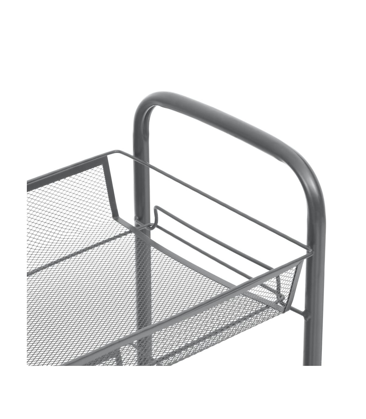 This trolley is perfect for organising and sorting stuff in the kitchen, bathroom, office, etc. This household trolley features an iron construction, making it sturdy and durable. The space-saving cart has 4 wheels, and 2 wheels have brakes for easy moving and stalling. The mesh baskets are strong and removable, which provide additional storage space and make full use of the room. The trolley is ideal for storing toys, keys, food, etc.