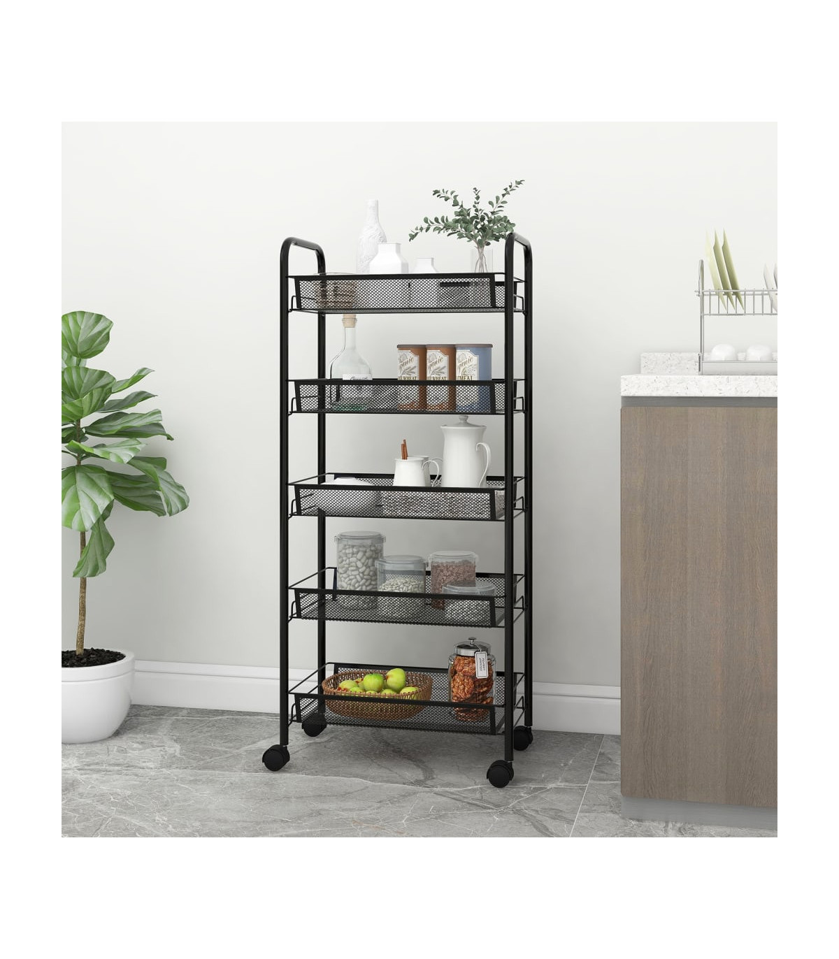 vidaXL 5-Tier Kitchen Trolley Black 46x26x105 cm Iron