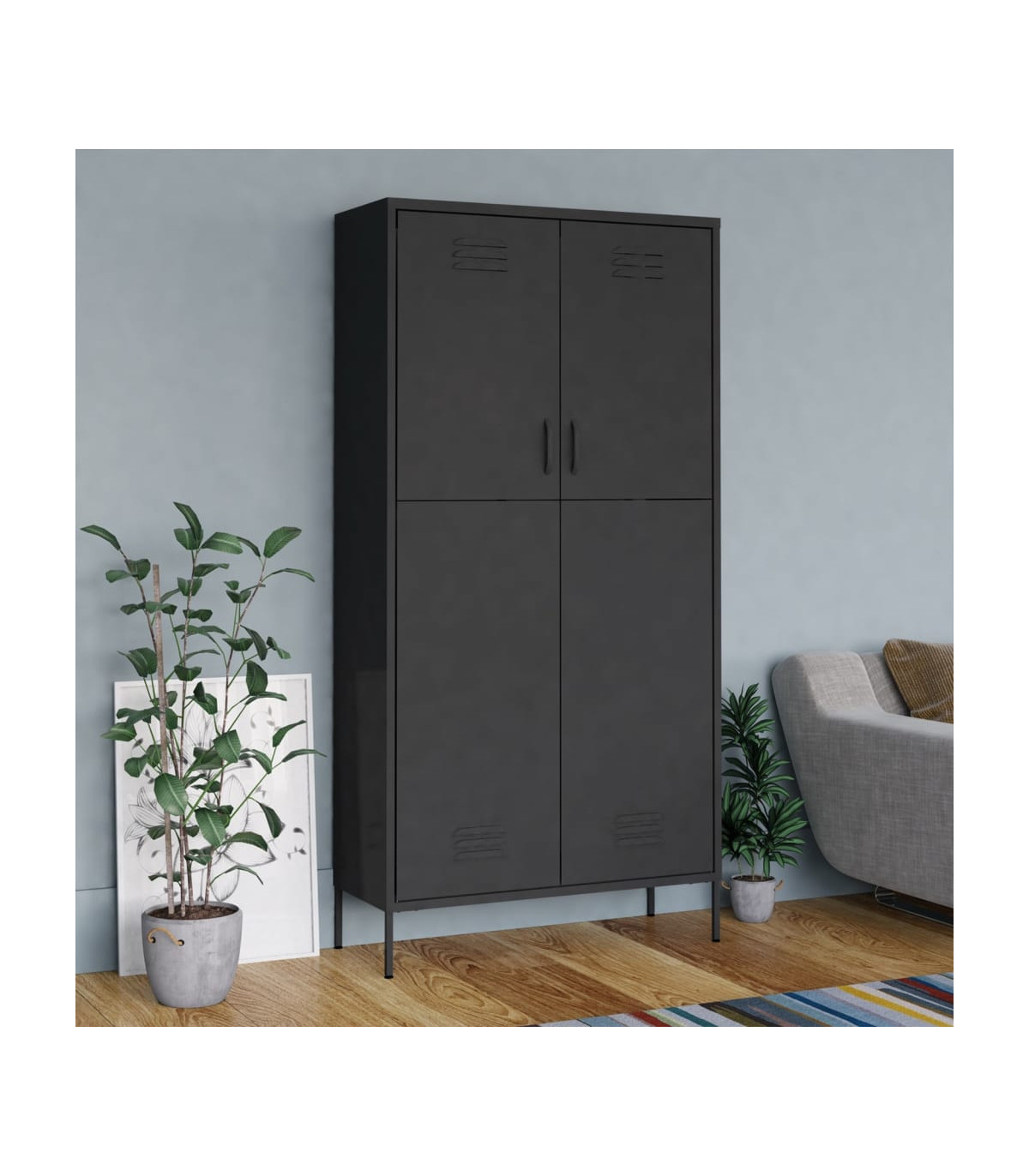 Keep your interior well organised and tidy with this wardrobe. It presents a perfect storage solution and adds chic touch to your existing home. This clothing cabinet is made of steel, making it durable as well as easy to clean. This clothing cabinet has 4 adjustable shelves and a large compartment with a hanging rod, which offer you ample storage space both for your longer outfits and other folded clothes or accessories, such as sweaters, jeans, hats, hand bags, etc.