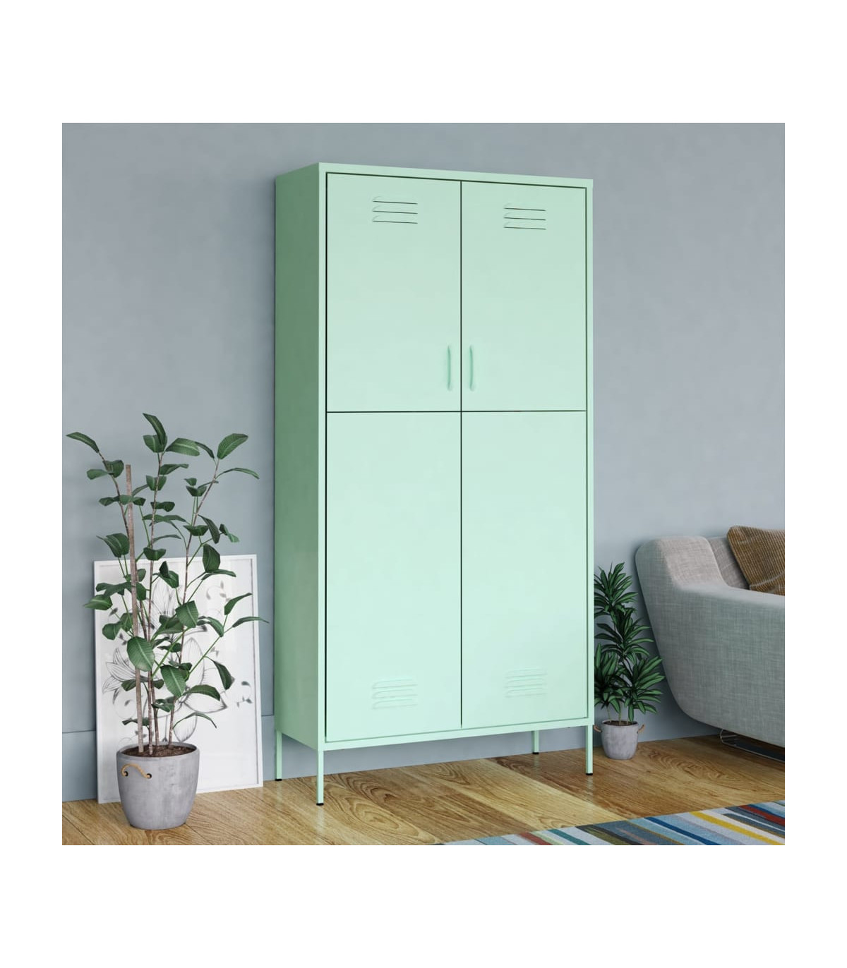 Keep your interior well organised and tidy with this wardrobe. It presents a perfect storage solution and adds chic touch to your existing home. This clothing cabinet is made of steel, making it durable as well as easy to clean. This clothing cabinet has 4 adjustable shelves and a large compartment with a hanging rod, which offer you ample storage space both for your longer outfits and other folded clothes or accessories, such as sweaters, jeans, hats, hand bags, etc.
