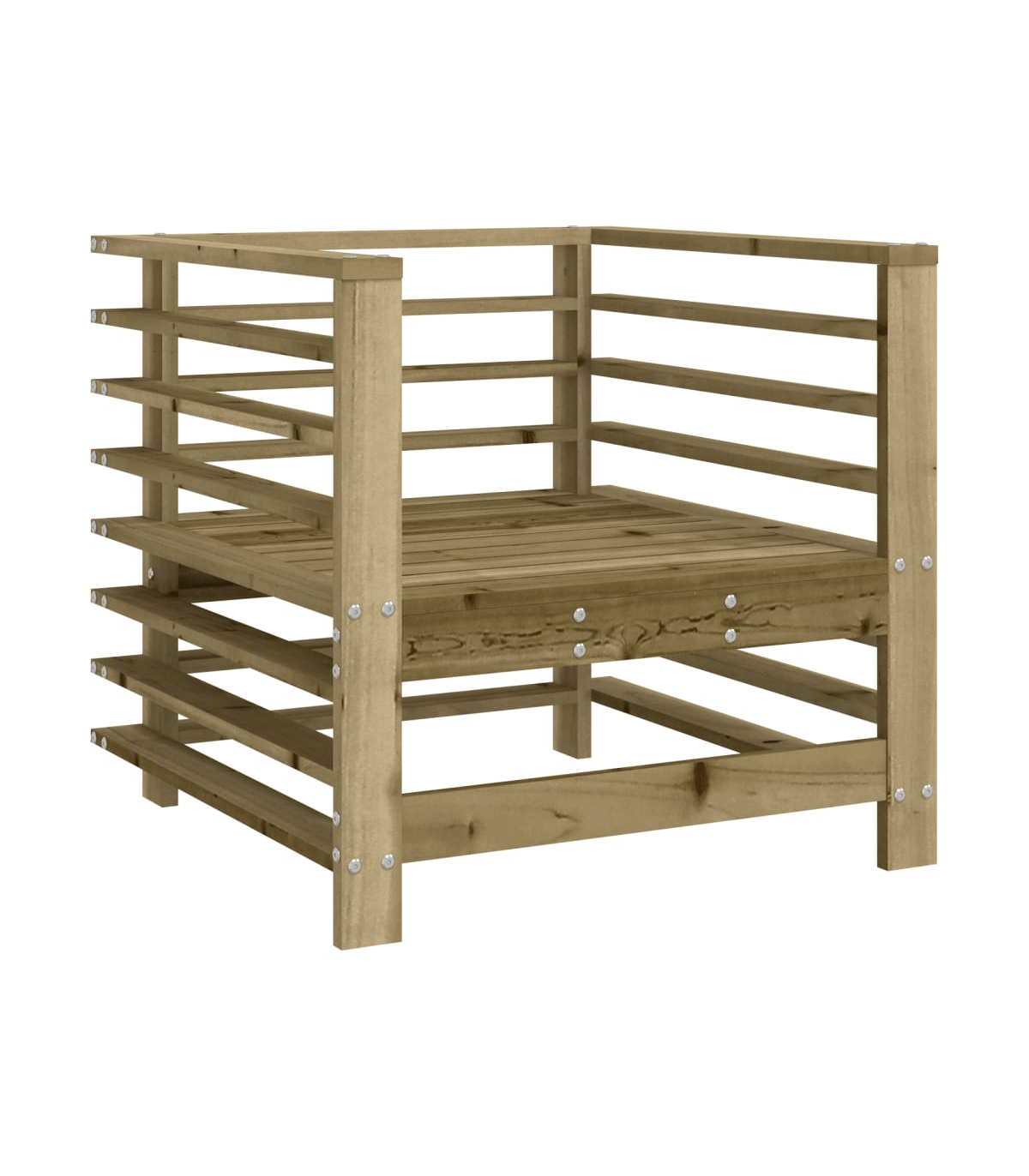 This wooden garden lounge set with slatted design will make a great addition to your garden, patio, or terrace for enjoying a cosy time with your family or friends. Solid pine wood: Solid pine wood is a beautiful natural material. Pine wood has a straight grain, and the knots give the material its signature, rustic look.Sturdy and stable frame: The wooden frames make the lounge set sturdy and stable for daily outdoor use.Comfortable seat experience: The backrests add extra seating comfort for the garden furniture set.Modular design: The outdoor lounge set is flexible and easy to move around. You can combine it with other modular segments in our shop to create your own personal garden lounge set configurations! Good to know:To make sure your outdoor furniture stays beautiful, we recommend protecting it with a waterproof cover.
