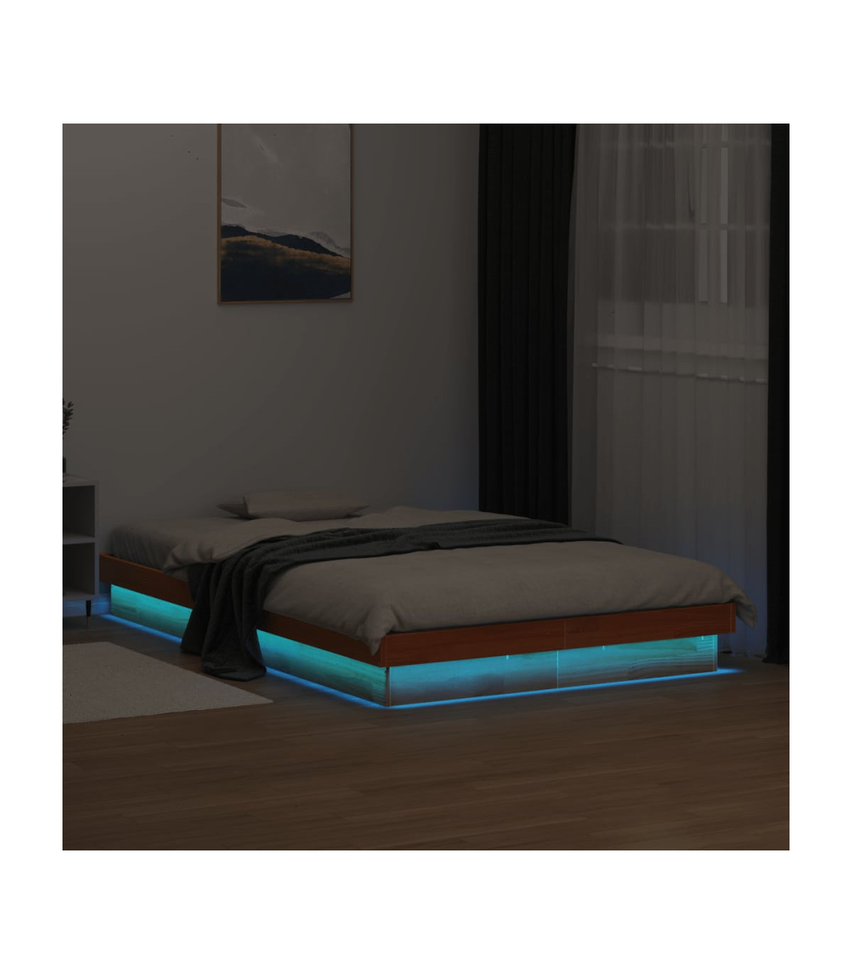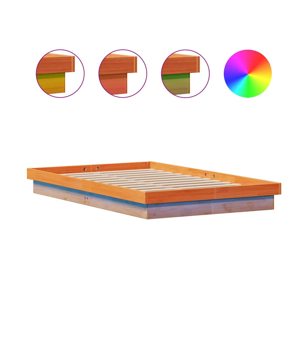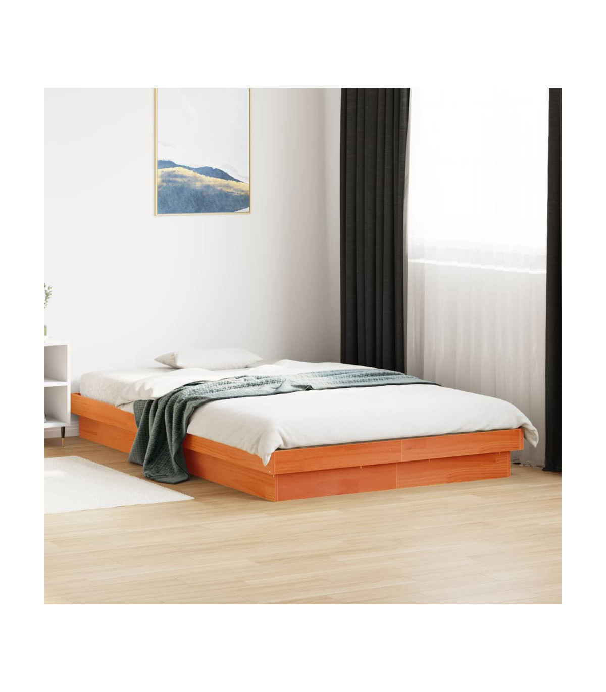 vidaXL LED Bed Frame Wax Brown 135x190 cm Double Solid Wood Pine