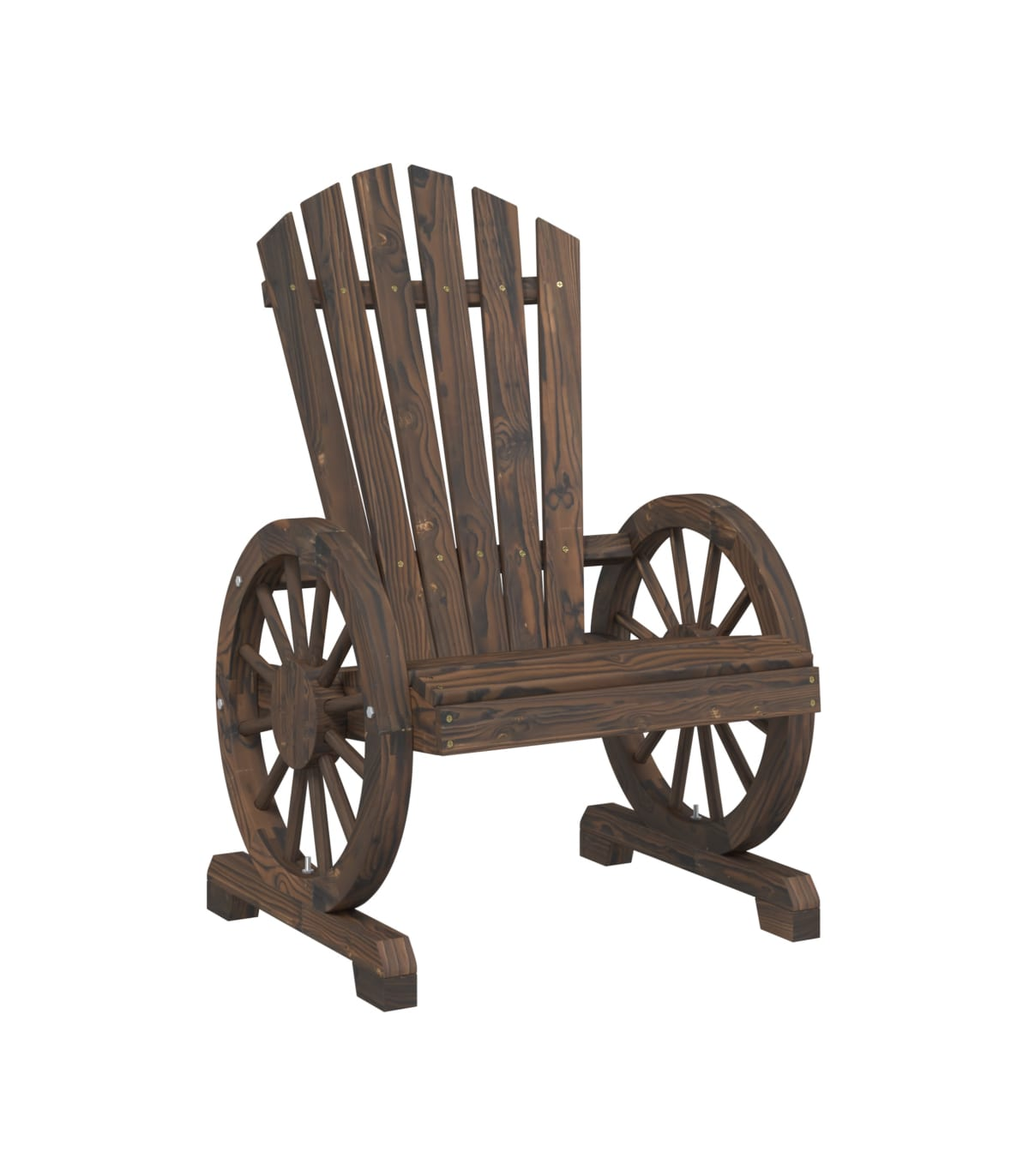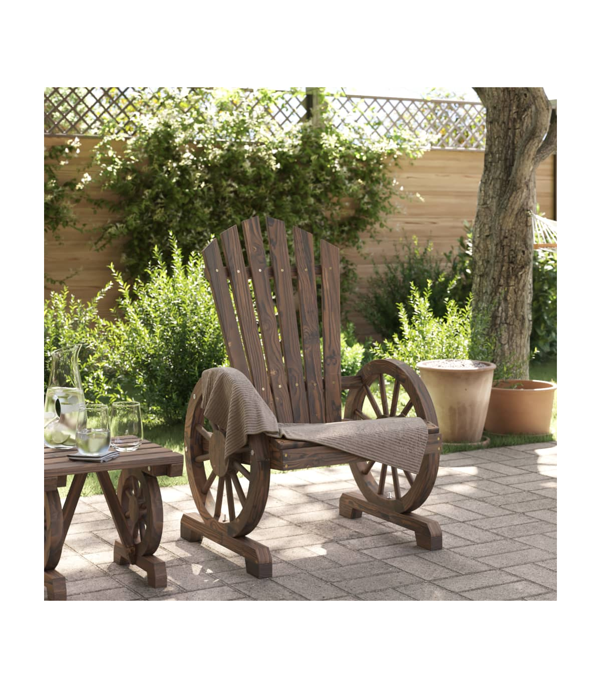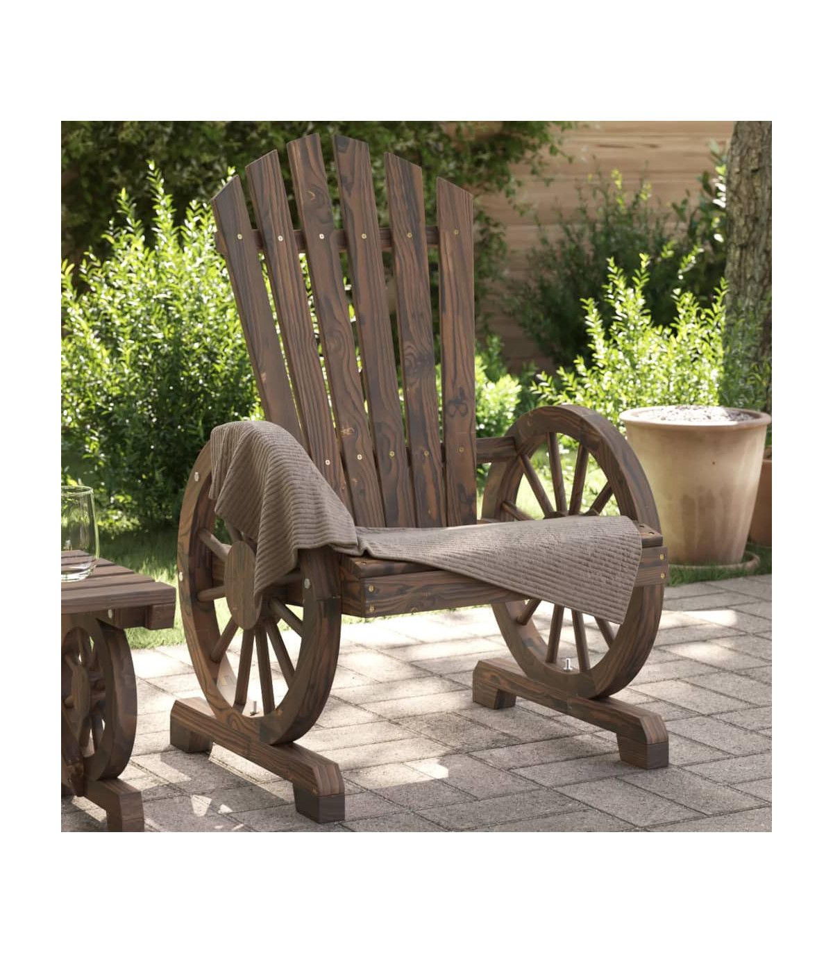 This garden Adirondack chair is perfect for those who want to enjoy the outdoors in style and comfort. Solid fir wood: Solid fir wood is a beautiful and durable material that maintains its integrity even when exposed to moisture. It does not dry out or warp, making it a reliable choice.Comfortable seating: The garden lounge chair features an ergonomic seat and angled backrest for optimal seating comfort. Additionally, the wagon-wheel shaped armrests provide comfortable space to rest your arms.Wide applications: The outdoor chair is a perfect seating solution in your gardens, backyards, lawns, decks, pool sides, balconies, and other outdoor living spaces. Good to know:To make sure your outdoor furniture stays beautiful, we recommend protecting it with a waterproof cover.