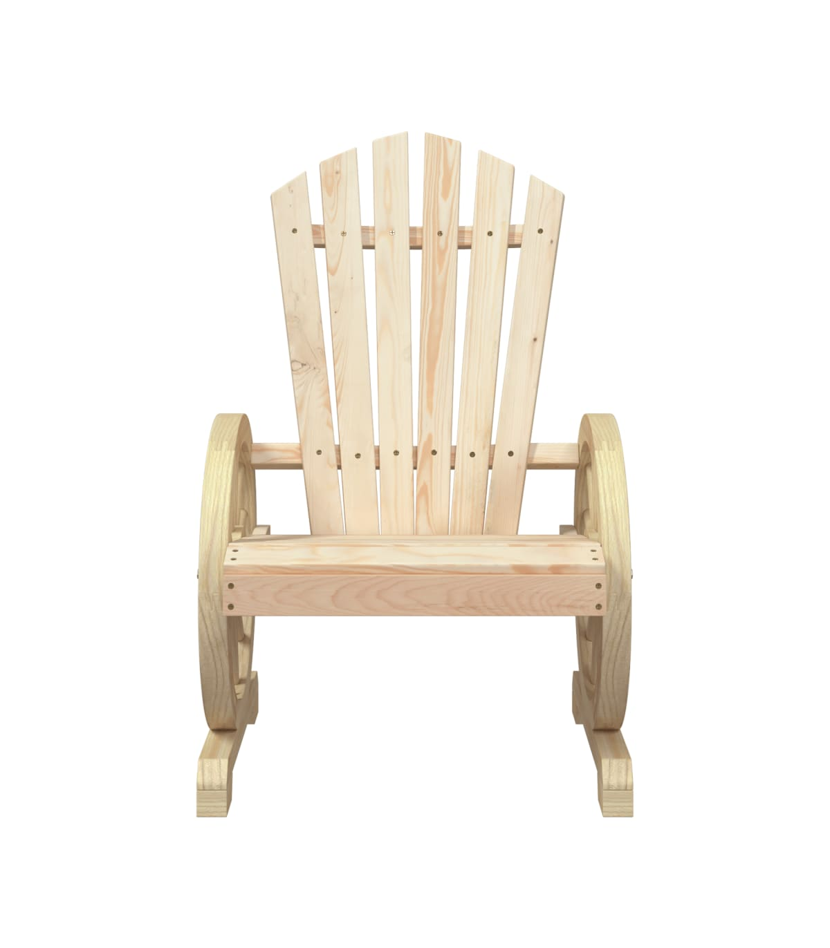 This garden Adirondack chair is perfect for those who want to enjoy the outdoors in style and comfort. Solid fir wood: Solid fir wood is a beautiful and durable material that maintains its integrity even when exposed to moisture. It does not dry out or warp, making it a reliable choice.Comfortable seating: The garden lounge chair features an ergonomic seat and angled backrest for optimal seating comfort. Additionally, the wagon-wheel shaped armrests provide comfortable space to rest your arms.Wide applications: The outdoor chair is a perfect seating solution in your gardens, backyards, lawns, decks, pool sides, balconies, and other outdoor living spaces. Good to know:To make sure your outdoor furniture stays beautiful, we recommend protecting it with a waterproof cover.