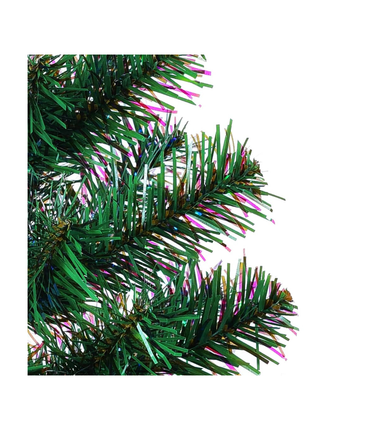 Make your dream Christmas into a reality with this charming Christmas tree! You can decorate it with beautiful ornaments and gifts. Iridescent colour: The tree features iridescent colour between white tips, which emits colourful glitter under various illumination intensities, making it more attractive. It also blends perfectly into your room.Sturdy stand: The artificial tree features a sturdy steel stand, which provides the tree with optimal stability.PVC tips: This Christmas decoration includes PVC tips, which provide a beautiful realistic look to the tree and ensure it is very bushy.Lasting durability: This Xmas tree is durable and allows for easy setup and disassembly. So it can be used every year, making it a very economical choice. Note:Each product comes with an assembly manual in the box for easy assembly.