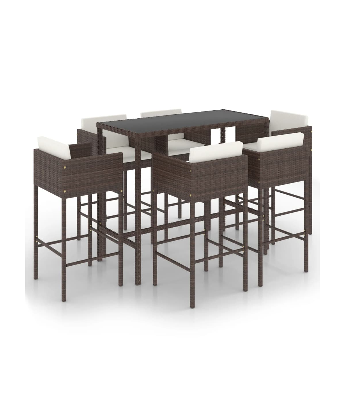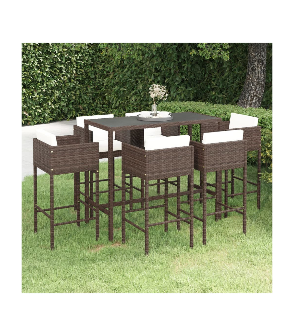 This stylish garden bar set provides you with a leisurely and comfortable time with your family and friends. Made of weather-resistant and waterproof PE rattan, this outdoor bar set is easy to clean, hard-wearing and suitable for daily use. The powder-coated steel frame makes the table and stools sturdy and durable. The tempered glass tabletop is ideal for placing drinks, food, or some decorative items. The footrest and cushions also add additional seating comfort for the stool. Thanks to the lightweight construction, all items are easy to move. Note: In order to extend the life of your outdoor furniture, we recommend you to clean it regularly and do not leave it outdoors without protection unnecessarily.Clean: Use a mild soap solution.Storing: If possible, store in a cool, dry place indoors. If the product is stored outdoors, protect it with a waterproof cover. Wipe and dry the excess water or snow from flat surfaces after a rain or snowfall. Allow sufficient air circulation to avoid moisture-related damage.