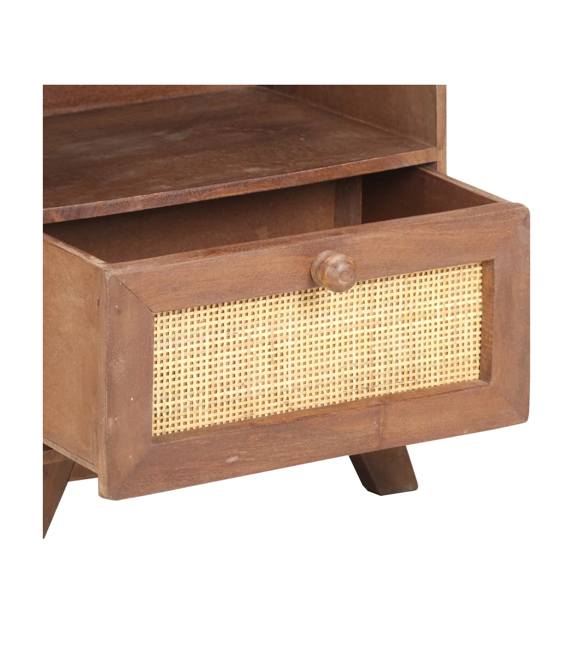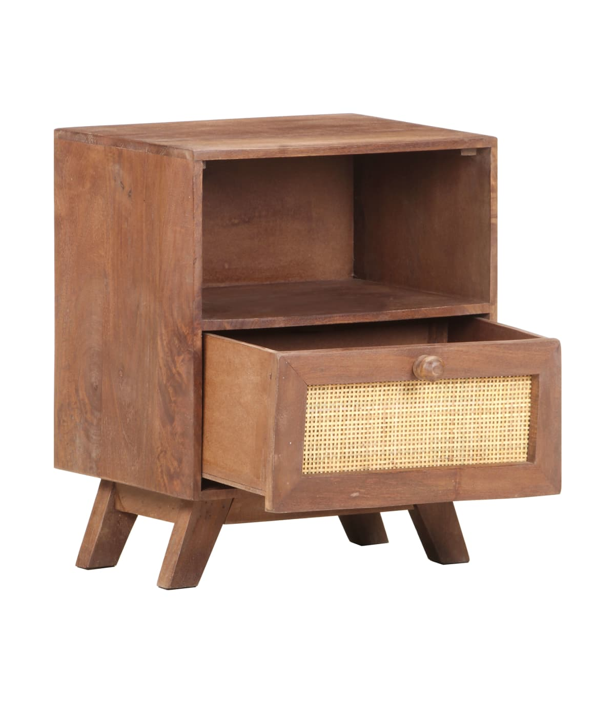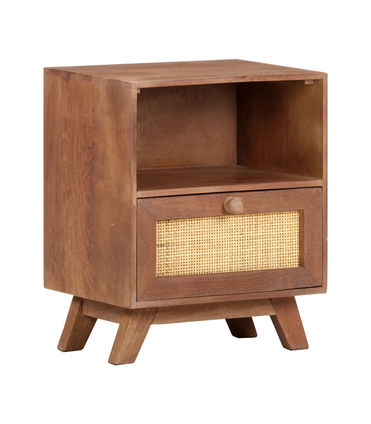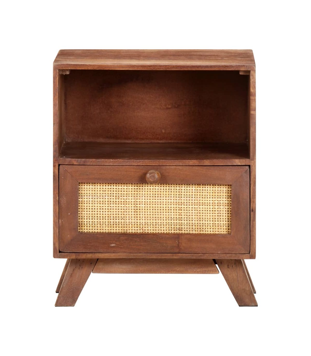 This wooden bedside cabinet gives your home decor a touch of rustic charm with its timeless design. This nightstand is made of solid mango wood, a tropical hardwood. It has the strength to bear the weight and also stand the wear and tear of time. Additionally, the exquisite craftsmanship and beautiful wood grains make every piece slightly different from the next. This side cabinet features a drawer and a shelf, so you can place books, magazines and other items in it. Its sturdy top is ideal for placing clocks and lamps. Important note: The colours vary from piece to piece, making each piece unique. The delivery is random, ensuring the exclusivity and individuality of your product.