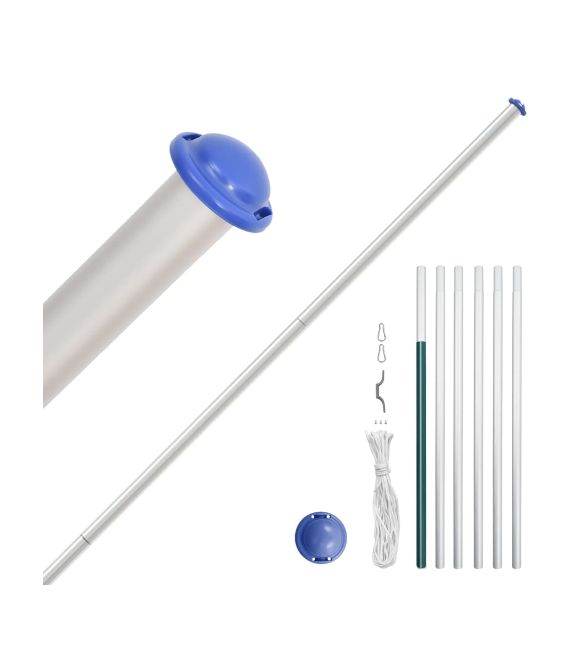 Combining the sectional flagpole with the Denmark flag, this national flag set will be an eye-catcher in your garden, at parties, and even at sporting events! Durable flag: The national flag is made of durable polyester and fitted with two solid brass grommets to ensure long-term use. In addition, the flag has reinforced edges and double stitching to prevent it from being torn apart.Weather-resistant flagpole: The flagpole is made of aluminium, which offers strength and corrosion resistance. The weather-resistant aluminium makes the flagpole durable.Adjustable length: The festival flag pole is equipped with multiple parts. The height of the flagpole can be adjusted to meet your various need and occasion for the length of the flagpole.Stable frame: The ground sleeve allows the garden flag pole to stick to the ground and keep it stable.Easy to operate: Thanks to the simple plug-in system, the camping flag pole can be set up in no time. You can hoist and lower your flag without hassle with the included rope and rings. Good to know:To make assembly as easy as possible, each product is delivered with a manual.