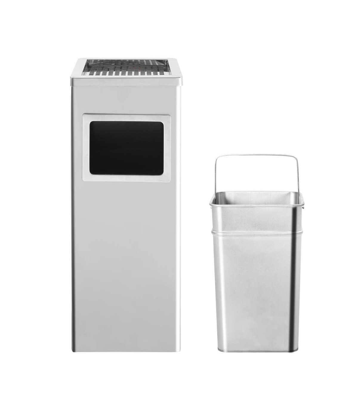 Characterized by the elegance of stainless steel and an ashtray design, our high quality ashtray dustbin not only has a sophisticated design, but also scores with its functionality. Our bin has a large-capacity recycling waste barrel and also includes an ashtray at the top, which can be used both indoors and outdoors, like in the hotel, restaurant, in front of the house, offices, as well as other public places. Made of stainless steel, it is sturdy and not easy to deform and rust, which can ensure long service life. You can easily empty the ashtray with the removable inserts. Inner barrel can be taken out with great ease for you to clean and wash it.