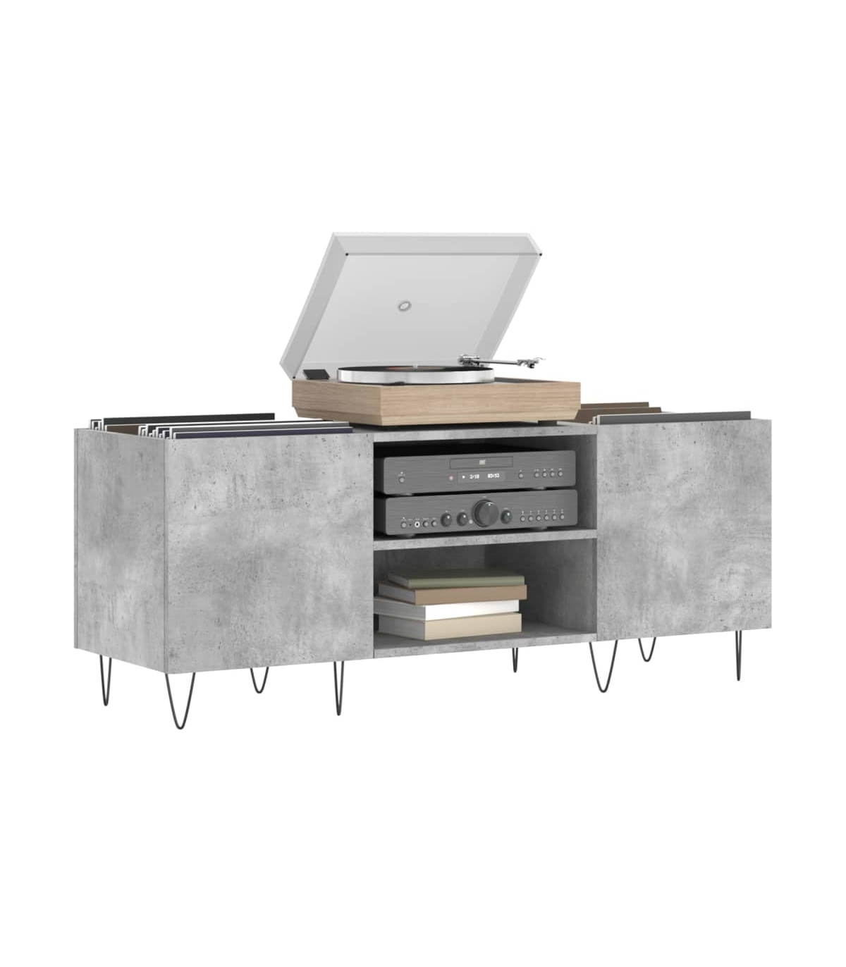 vidaXL Record Cabinet Concrete Grey 121x38x48 cm Engineered Wood