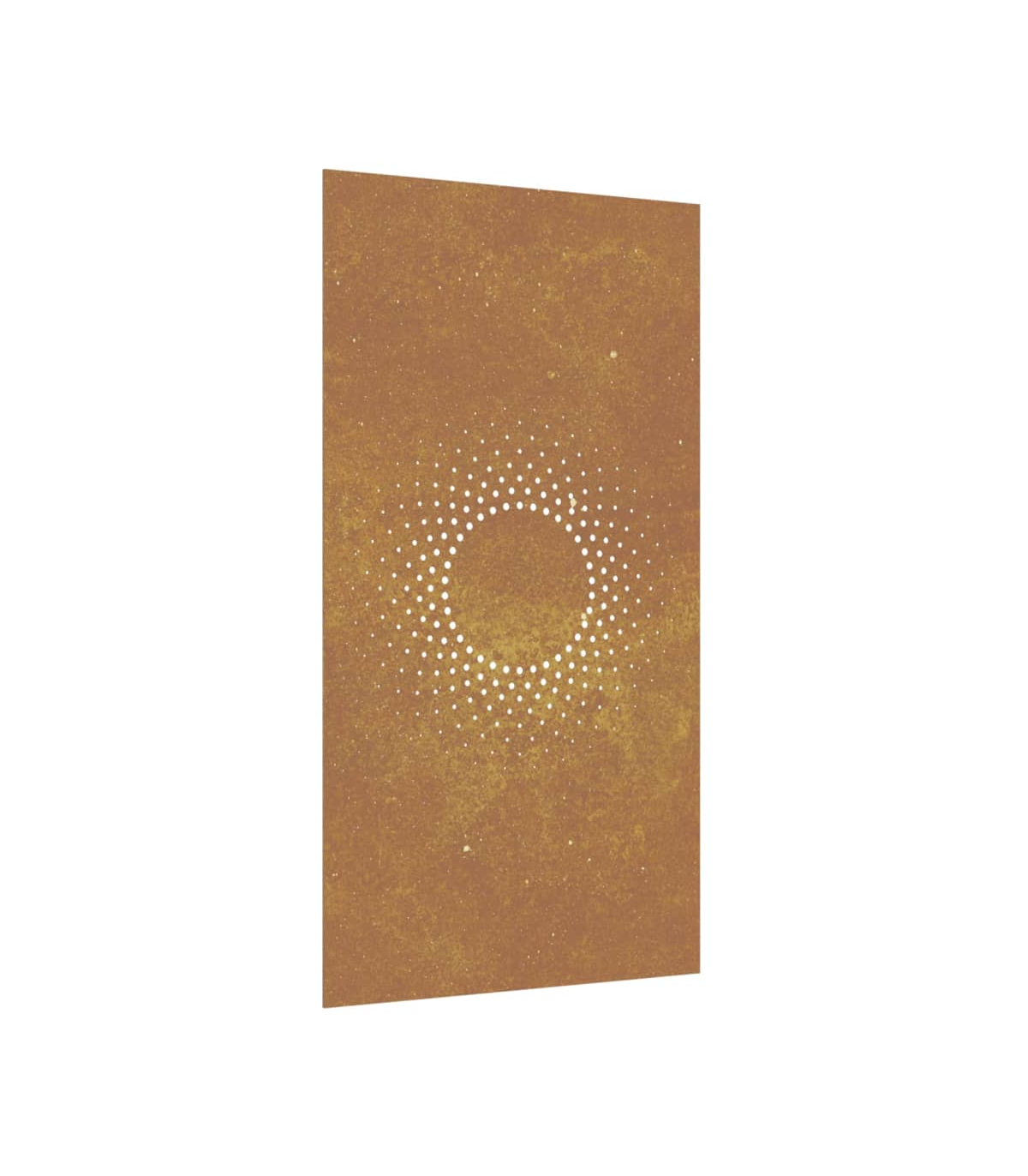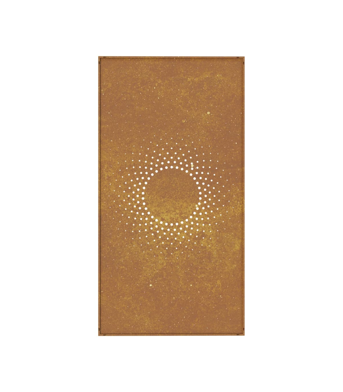 Turn a blank wall or fence into a masterpiece with this garden wall decoration. Durable material: Corten steel, also known as weathering steel. This is anti-corrosive by its very nature. It develops a rusty protective layer against corrosion when first exposed to atmospheric conditions. Thus, you don't need to paint it. This can help you save on maintenance and repair costs. The distinctive brown colour on the corten steel will surely be an eye-catcher. Finally, weathering steel is exceptionally durable and will stand up to the test of time.Exquisite design: The metal wall decoration adopts a hollow design of the sun pattern, creating a natural atmosphere in your garden.Easy installation: The outdoor wall decoration is easy to install with the mounting holes on the back. Good to know:This product is not rusted yet and has a normal metal colour when you receive it, but rust will develop over time. You could speed up the rusting process by spraying it with soap water and salt water. To keep your clothes stain-free, avoid contact with the developing rust layer.