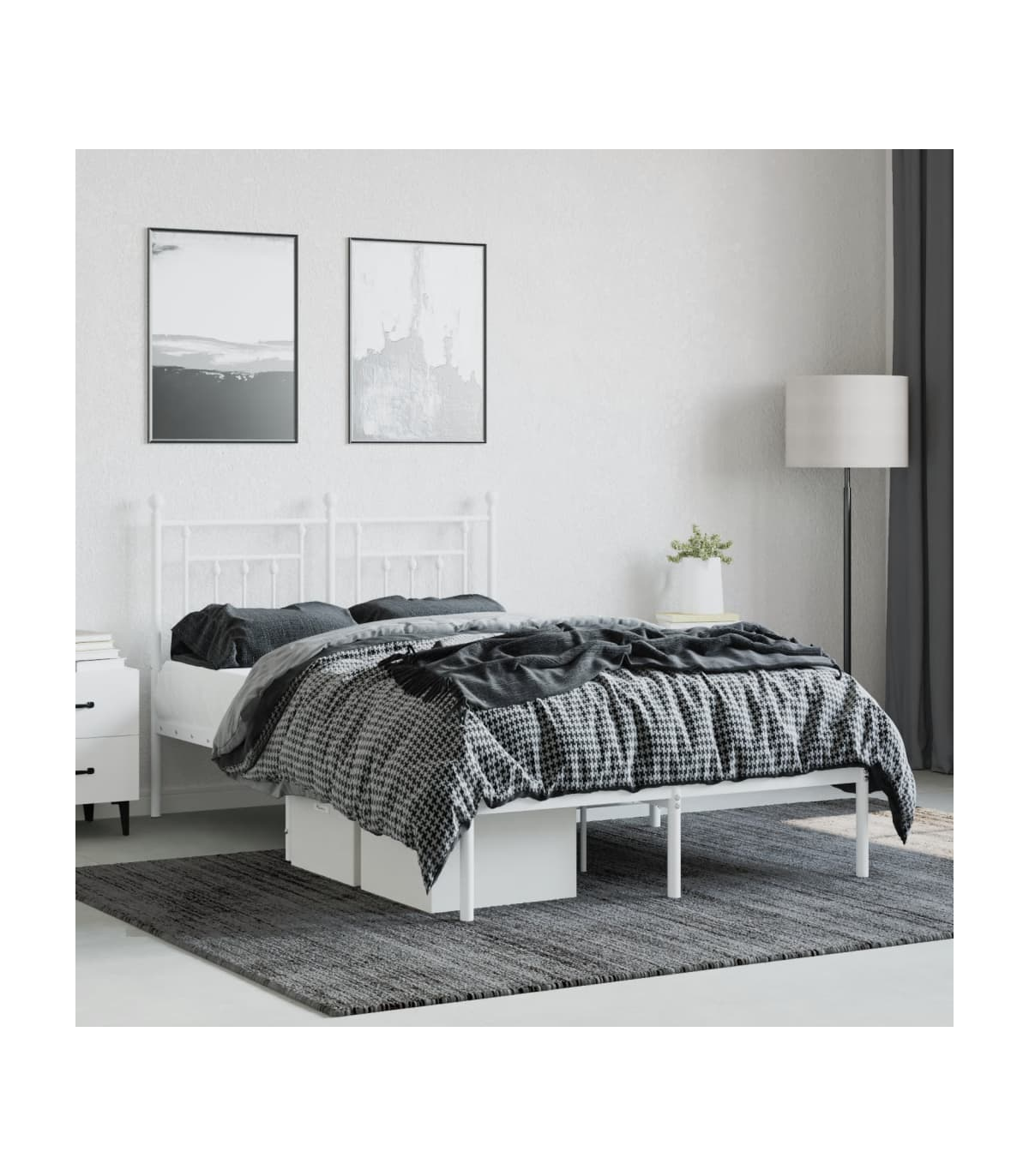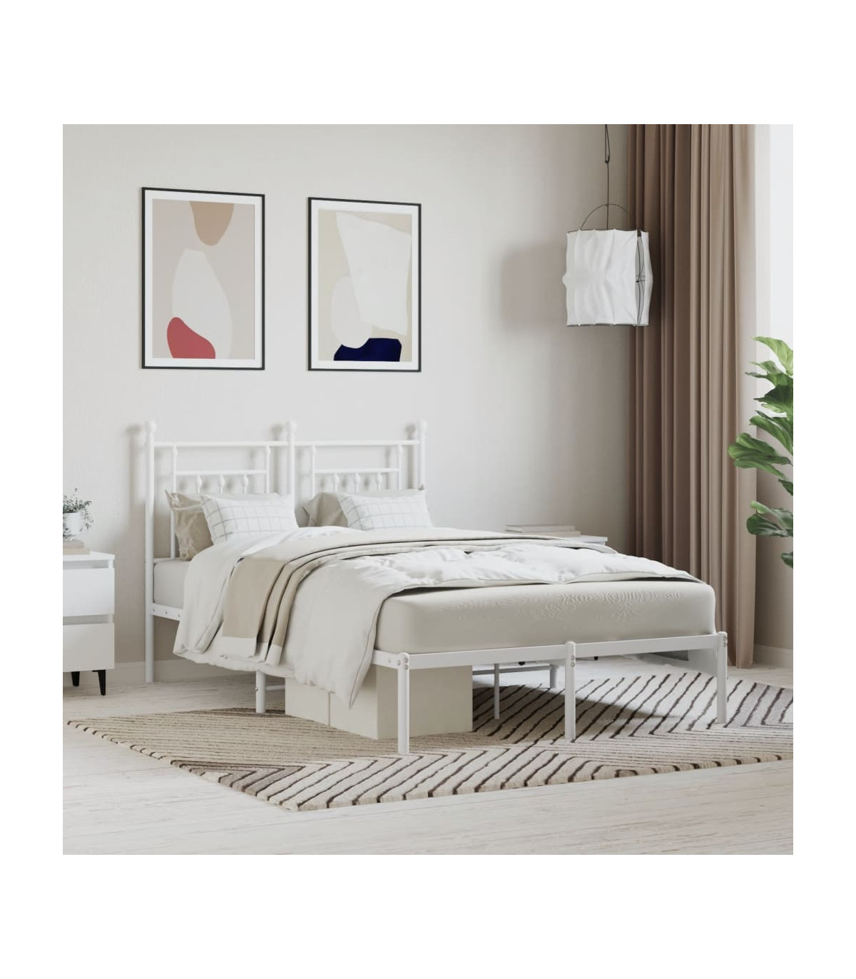 vidaXL Metal Bed Frame with Headboard White 120x190 cm Small Double