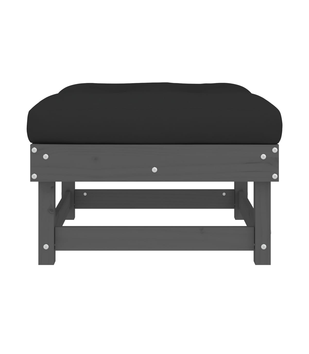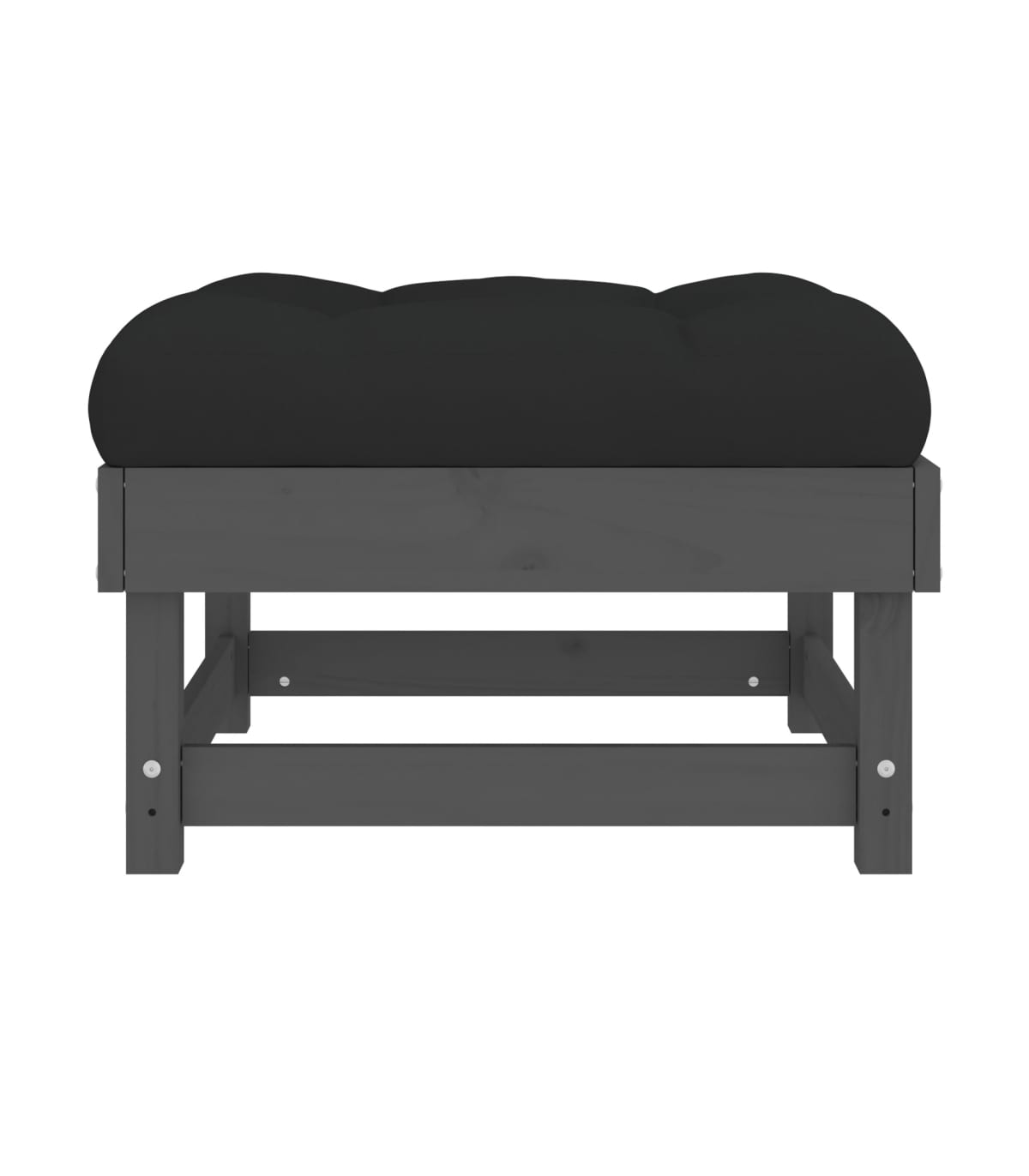 vidaXL Garden Footstool with Cushion Grey Solid Wood Pine