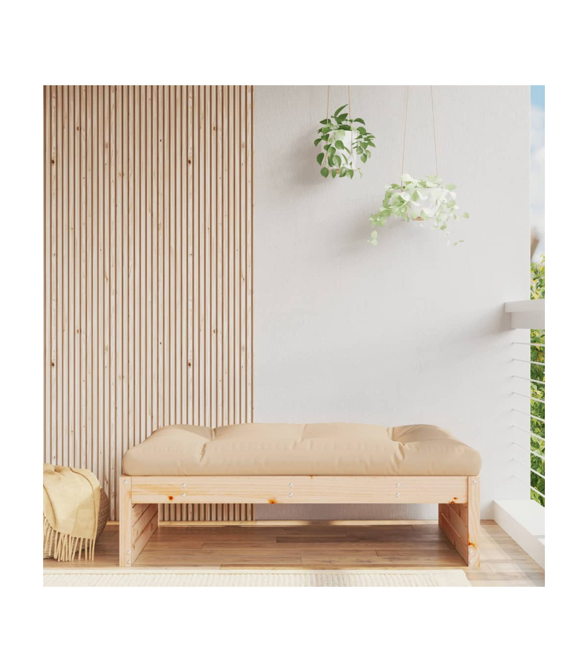 This wooden middle sofa, standing out with the slatted design and soft cushions, will make a great addition to your garden, patio, or terrace for enjoying a cosy time with your family or friends. Solid pine wood: Solid pine wood is a beautiful natural material. Pine wood has a straight grain, and the knots give the material its signature, rustic look.Sturdy and stable frame: The wooden frames make the garden sofa sturdy and stable for daily outdoor use.Comfortable seat experience: The backrest adds extra seating comfort for the outdoor sofa. Also, the thickly padded cushion provides comfort for your sitting time.Modular design: The sectional sofa is flexible and easy to move around. You can combine it with other modular segments in the webshop to create your own personal garden lounge set configurations! Good to know:To make sure your outdoor furniture stays beautiful, we recommend protecting it with a waterproof cover.
