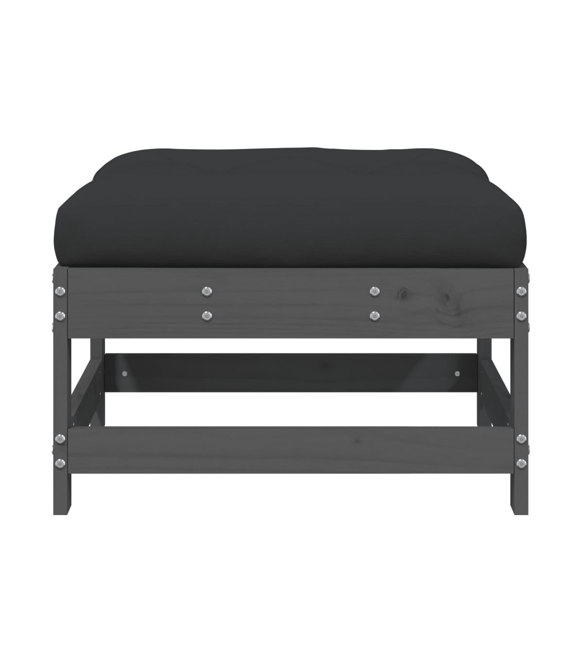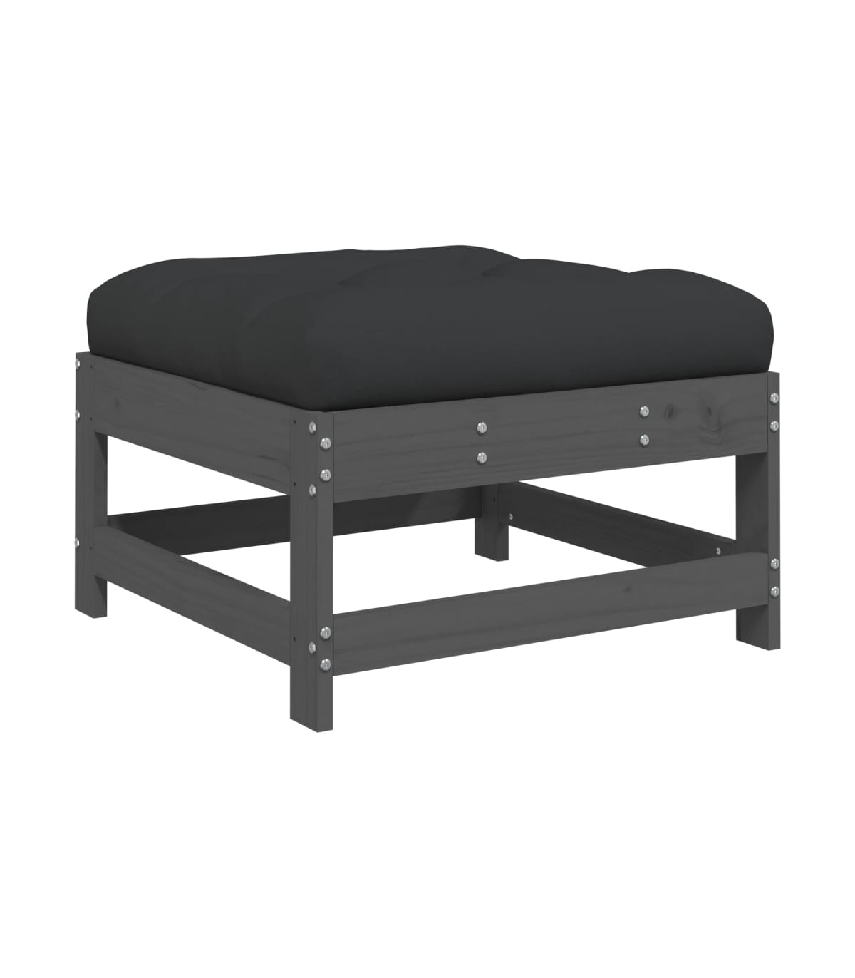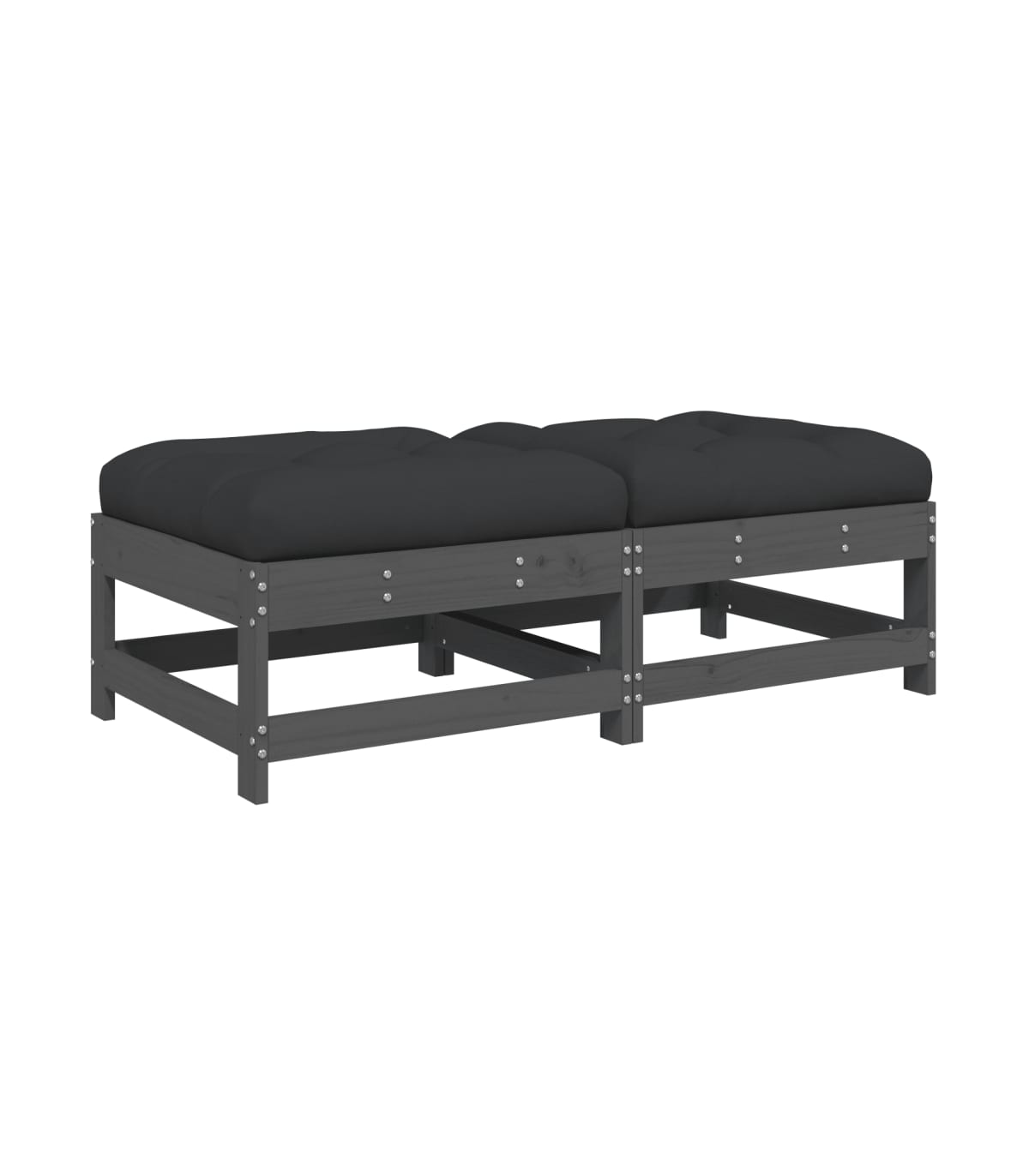 vidaXL Garden Footstools with Cushions 2pcs Grey Solid Wood Pine
