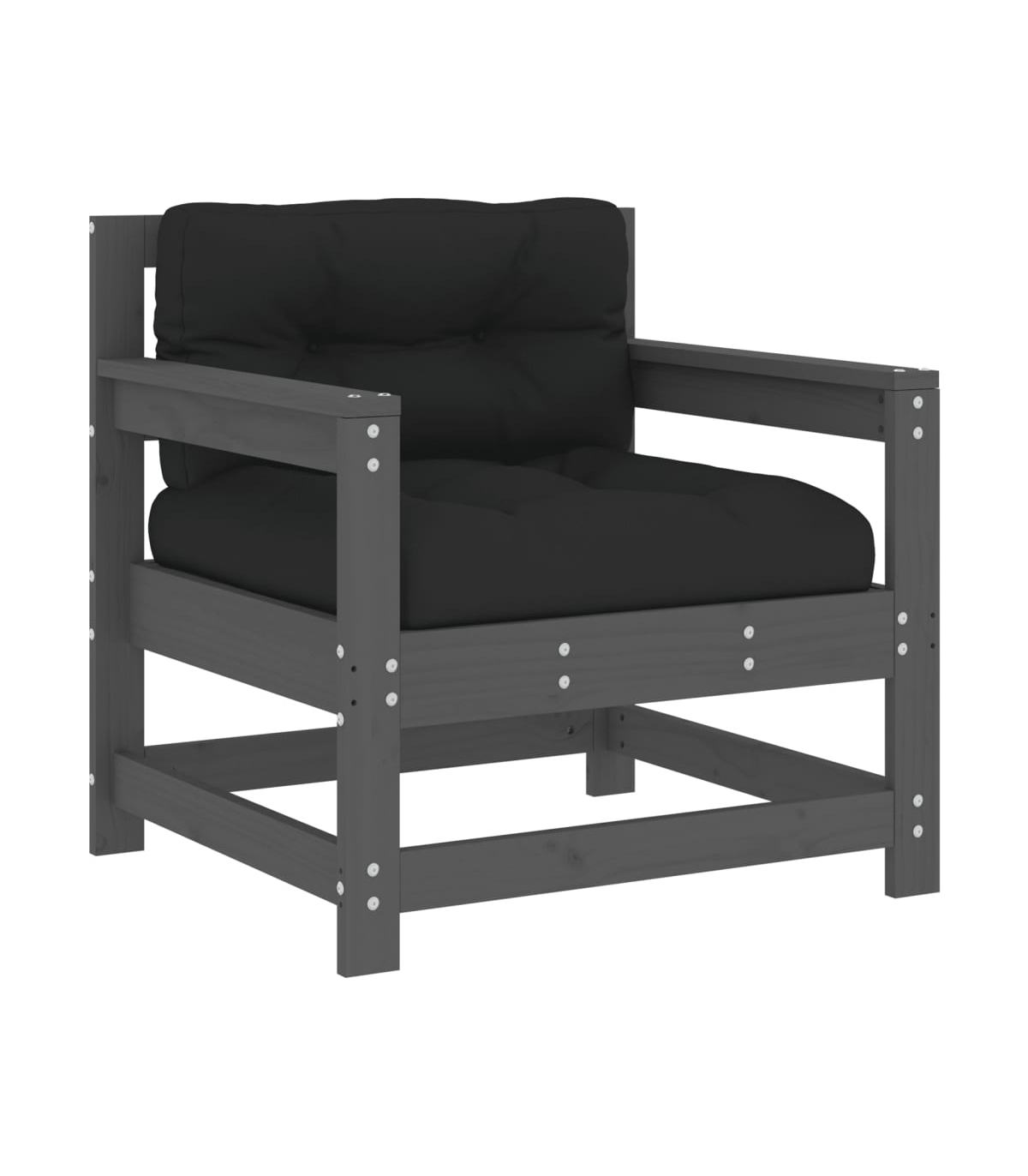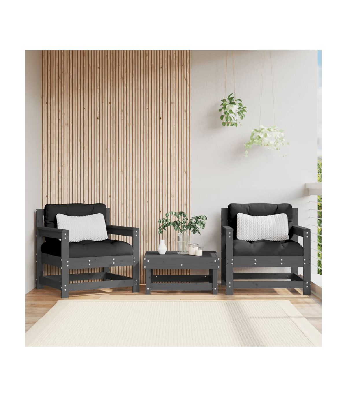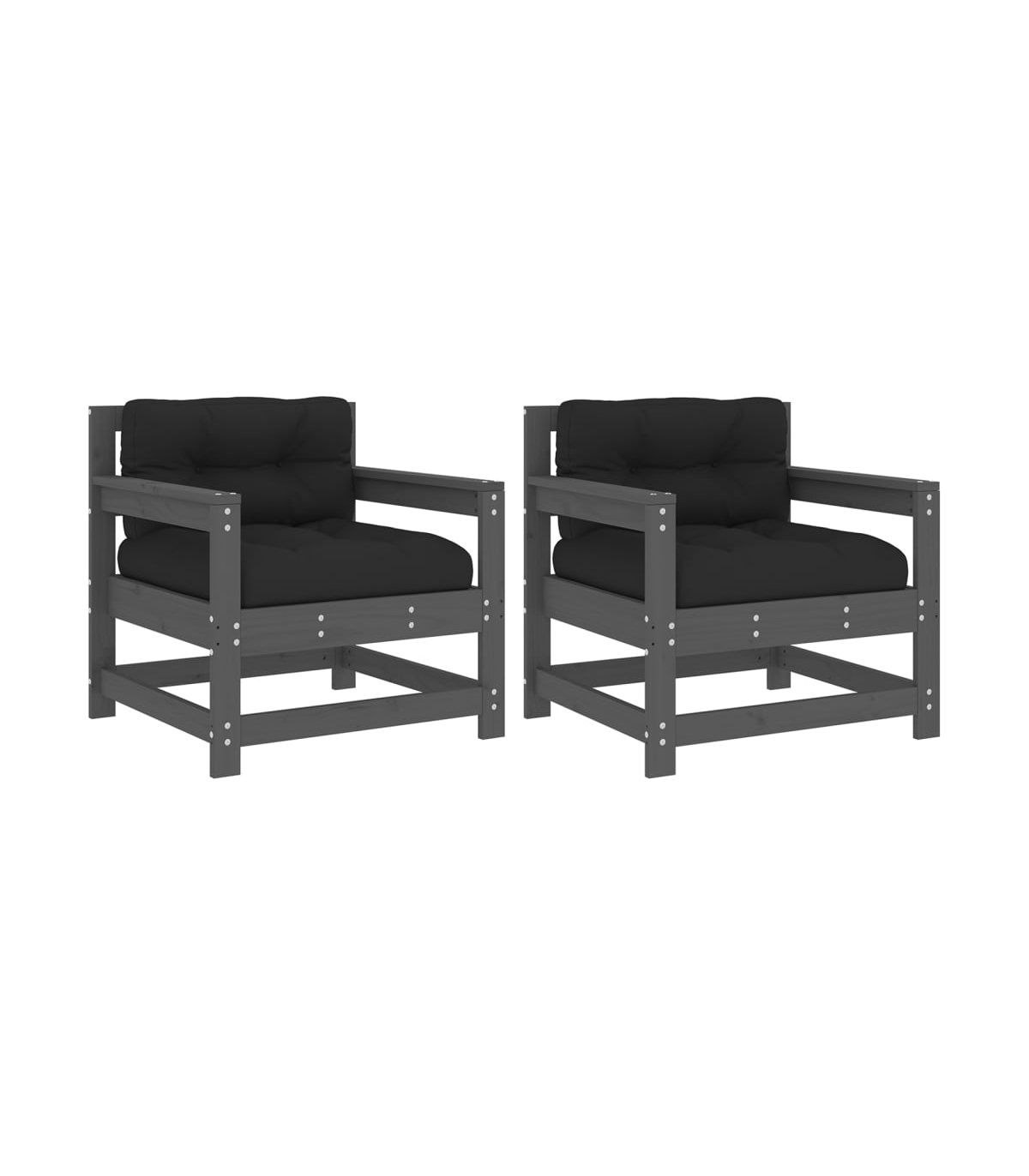 vidaXL Garden Chairs with Cushions 2 pcs Grey Solid Wood Pine