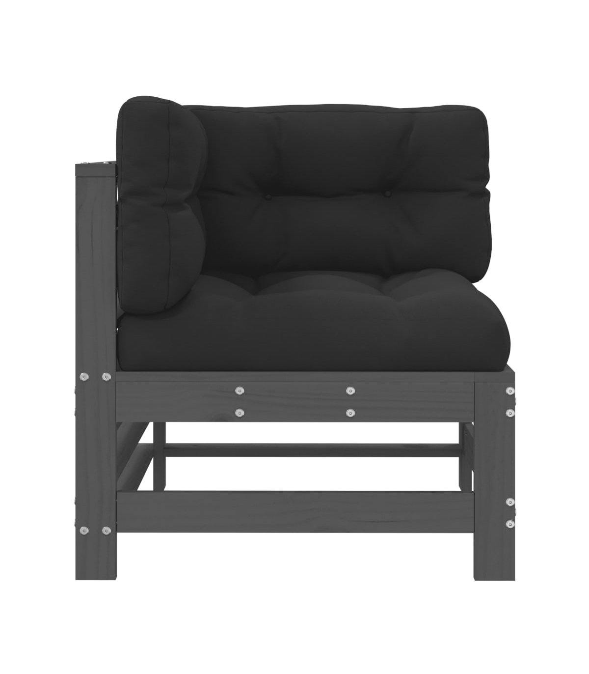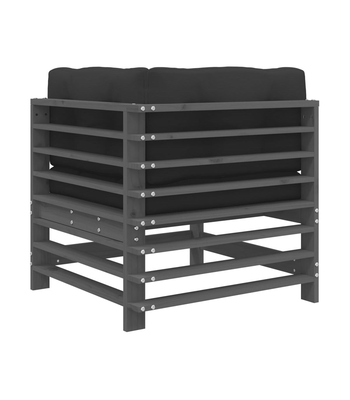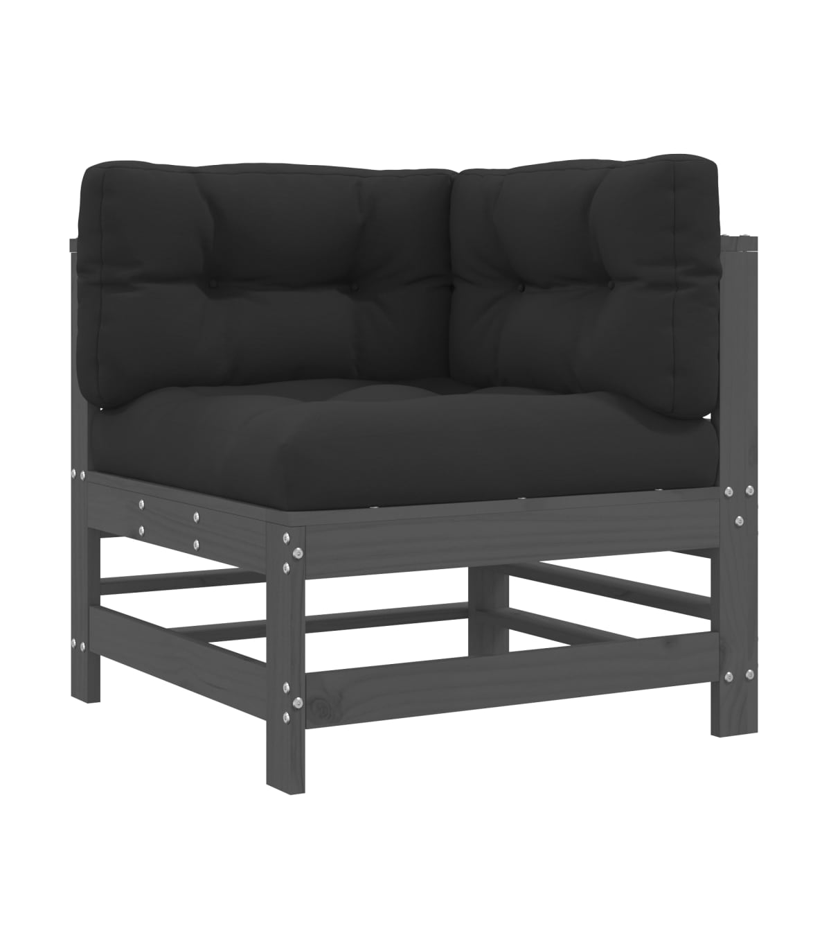 vidaXL Corner Sofa with Cushions Grey Solid Wood Pine