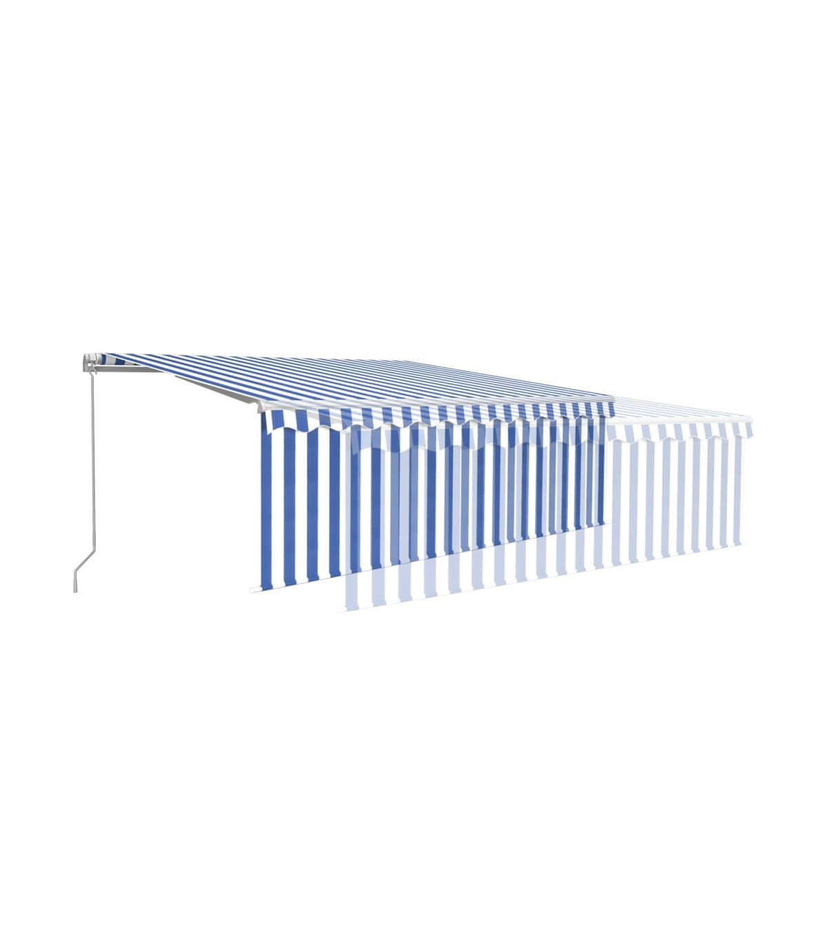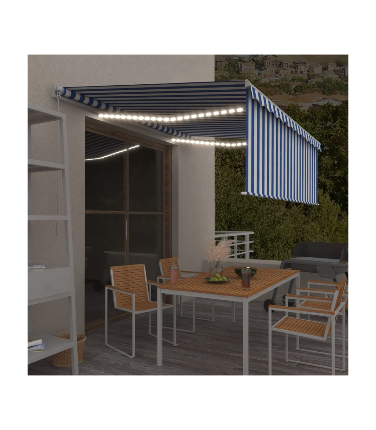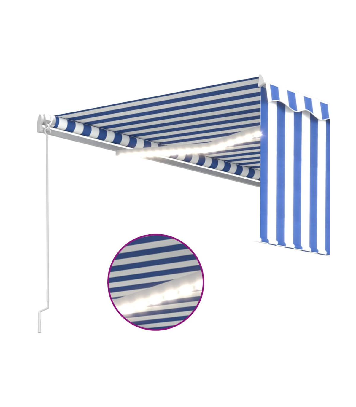 Create a lovely and cool place in your outdoor spaces with this retractable awning! This outdoor awning is built with a rust-resistant powder-coated aluminium frame, making it lightweight yet sturdy. The patio awning's fabric is made of high-density polyester with PU coating, which is UV and water-resistant. Additionally, the angle and height can be adjusted to meet your specific needs. You can open and retract the awning smoothly with the long hand crank. What's more, the solar-powered LED lights provide energy-saving lighting at night. The blind protects you from UV rays and offers privacy protection.