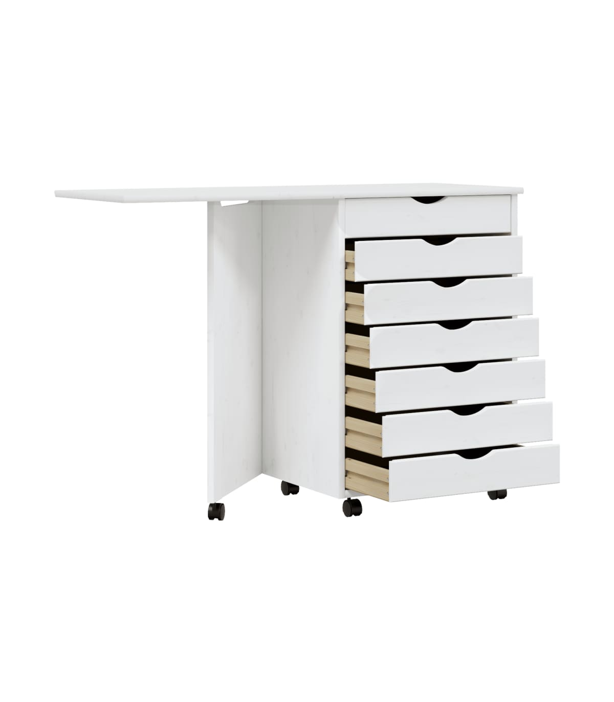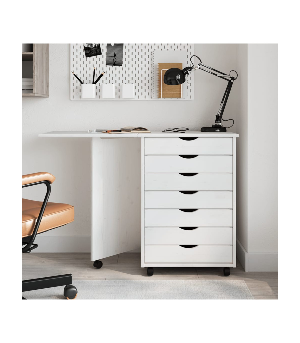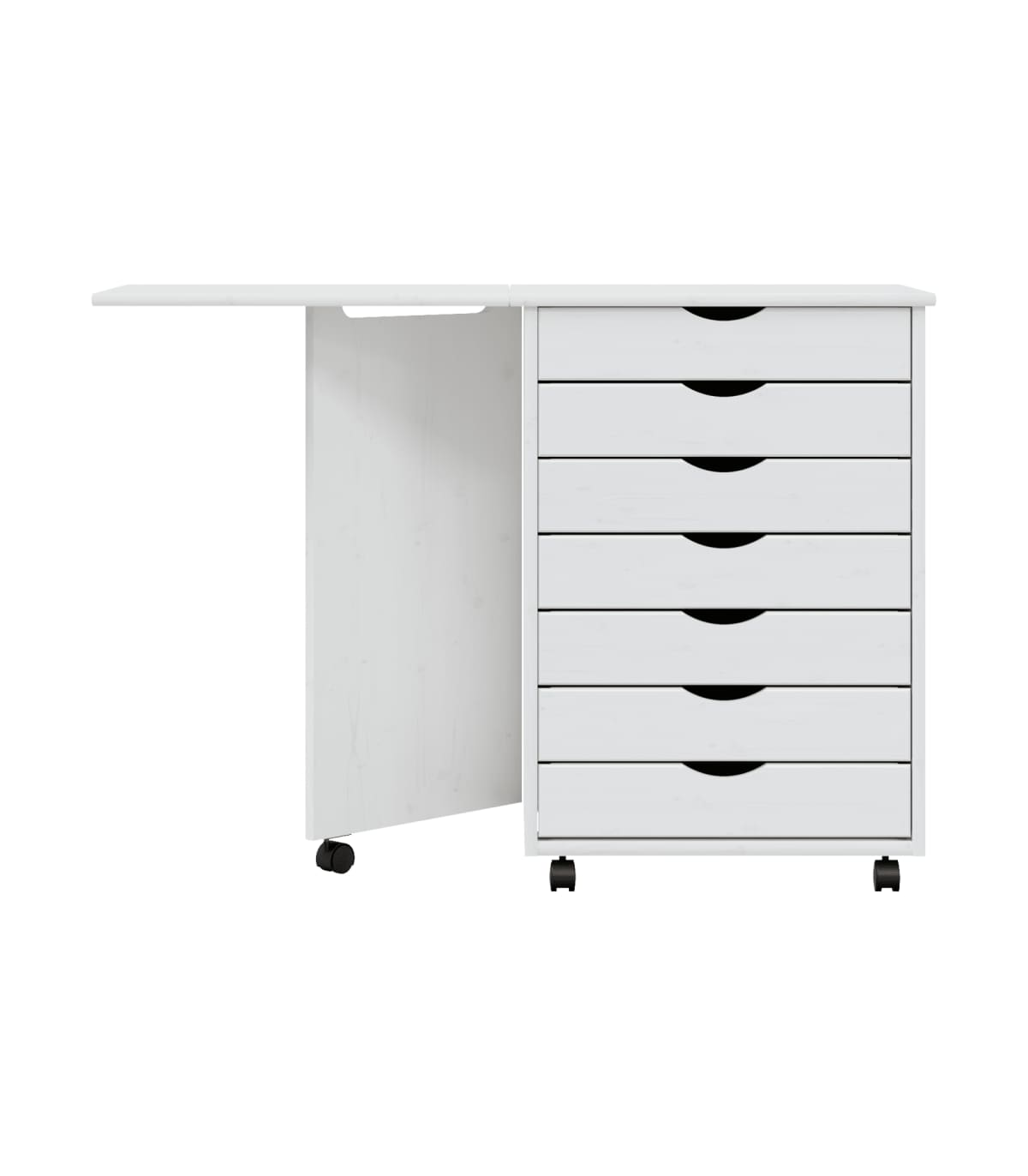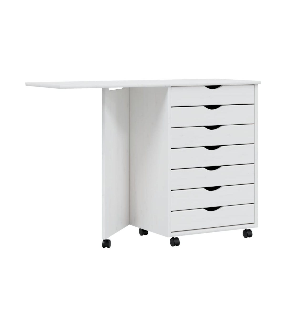 This rolling cabinet with desk helps you work better by keeping things organised and within easy reach. Foldable design: The desktop can be folded up to save space according to your needs. The office cabinet is meant to maximise storage capacity with a minimal overall footprint.Ample storage space: The spacious tabletop provides ample space to hold your laptop, clocks, and other office supplies. Besides, the filling cabinet has drawers to store your books, folders and other items. The concave handle allows you to draw out each tier to get what you want.Solid pine wood: Solid pine wood is a beautiful natural material. Pine wood has a straight grain, and the knots give the material its signature, rustic look.Flexible wheels: The wheels make the drawers trolley can be quickly and easily moved to any different working area.Wide applications: With its simple design, the drawer cabinet fits well into any room. As a practical storage container, you can use it in the living room, bedroom, kitchen, garage, office, or craft room!