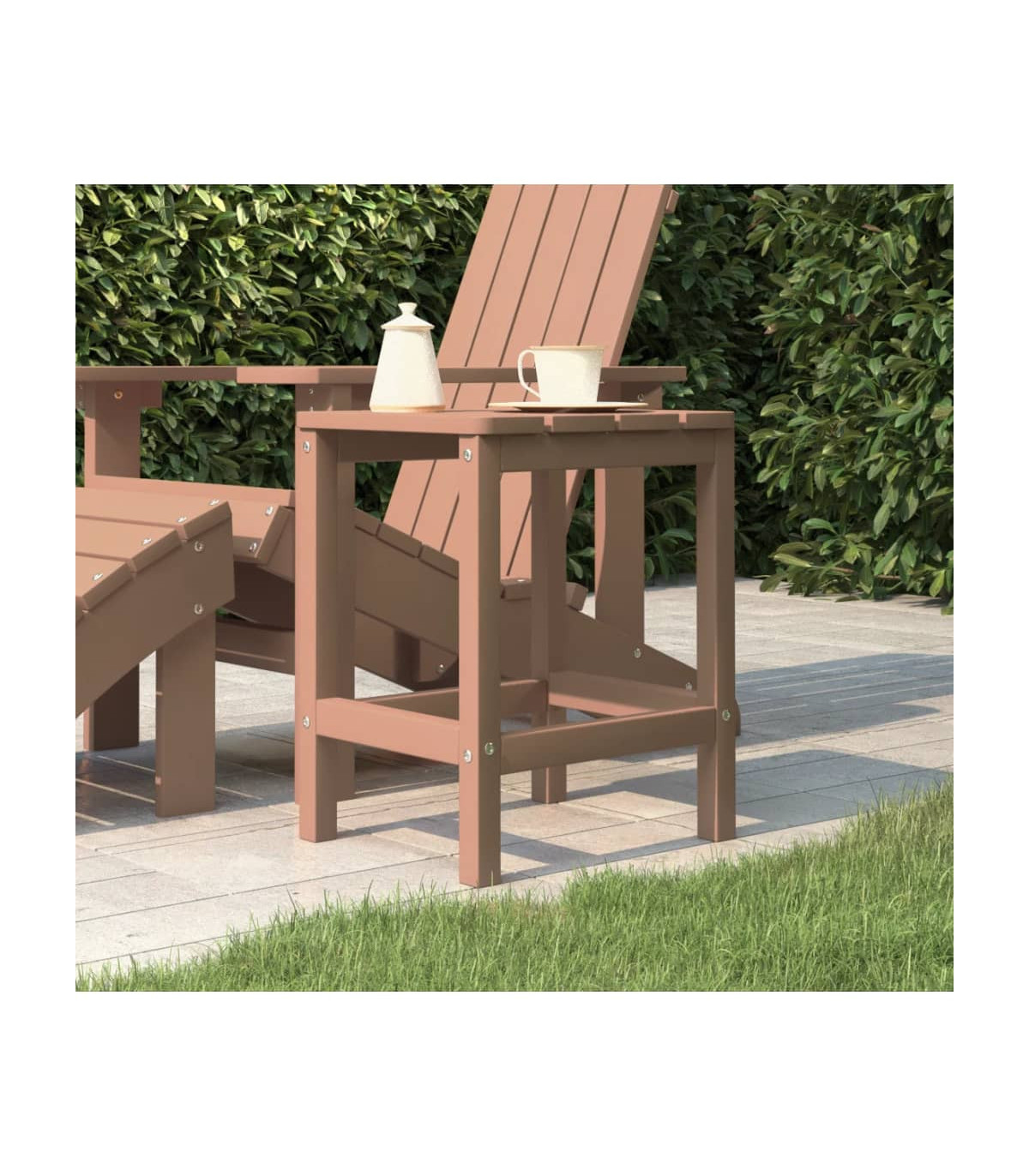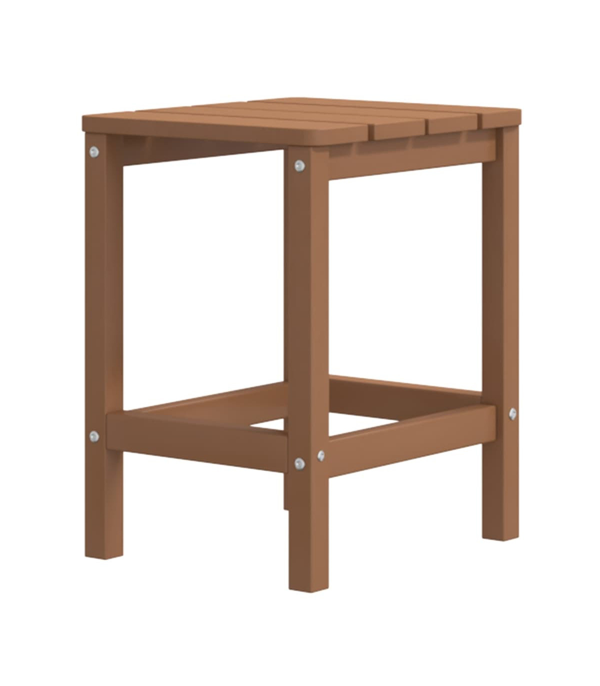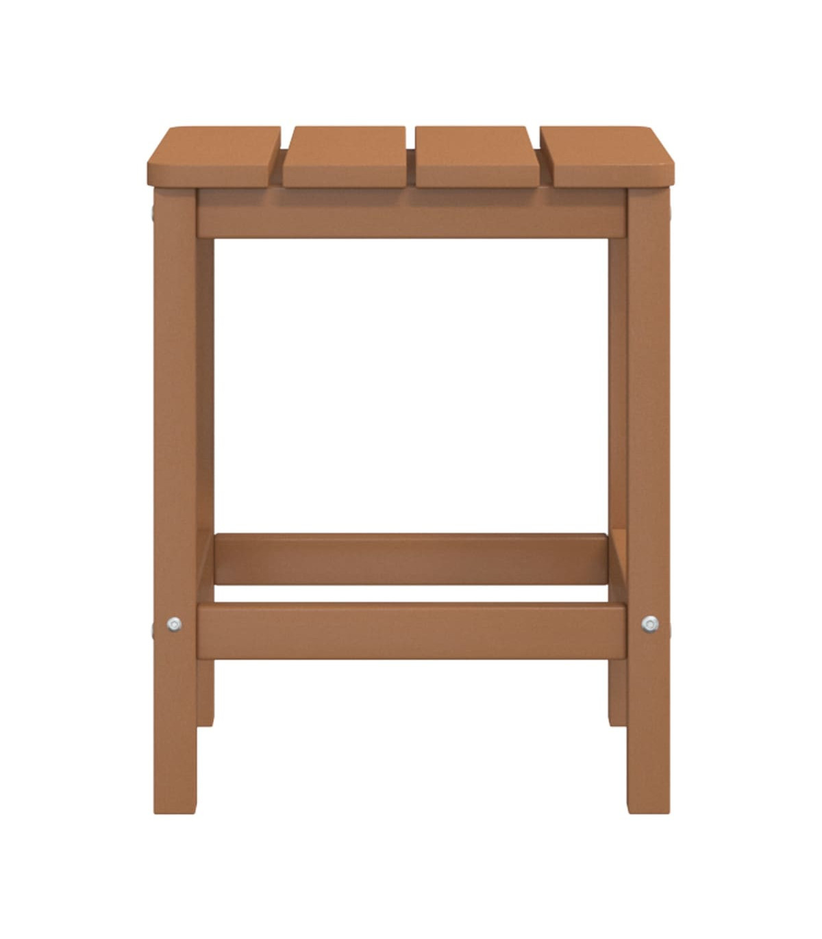 This minimally designed garden Adirondack table is meant to be the focal point of your outdoor living space. The patio table is constructed of weather-resistant and UV-resistant HDPE (High Density Polyethylene). This material perfectly improves the shortcomings of solid wood, which is easy to decay and crack, especially in rainy days. The garden side table requires no painting, staining, waterproofing, or similar maintenance. Only needs washing with soap, water, and soft bristle brush. With minimal care, this durable table will provide years of use. The sturdy tabletop allows you to place your phone, sunglasses, drink and other small items. Note: In order to extend the life of your outdoor furniture, we recommend you to clean it regularly and do not leave it outdoors without protection unnecessarily.Clean: Use a mild soap solution.Storing: If possible, store in a cool, dry place indoors. If the product is stored outdoors, protect it with a waterproof cover. Wipe and dry the excess water or snow from flat surfaces after a rain or snowfall. Allow sufficient air circulation to avoid moisture-related damage.
