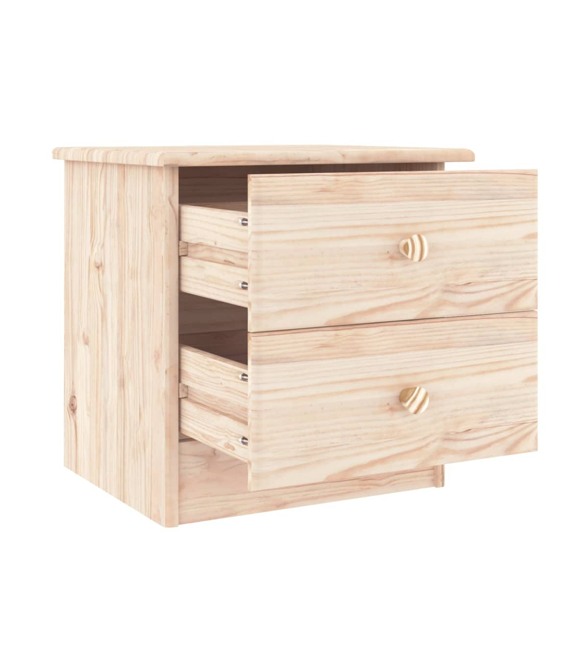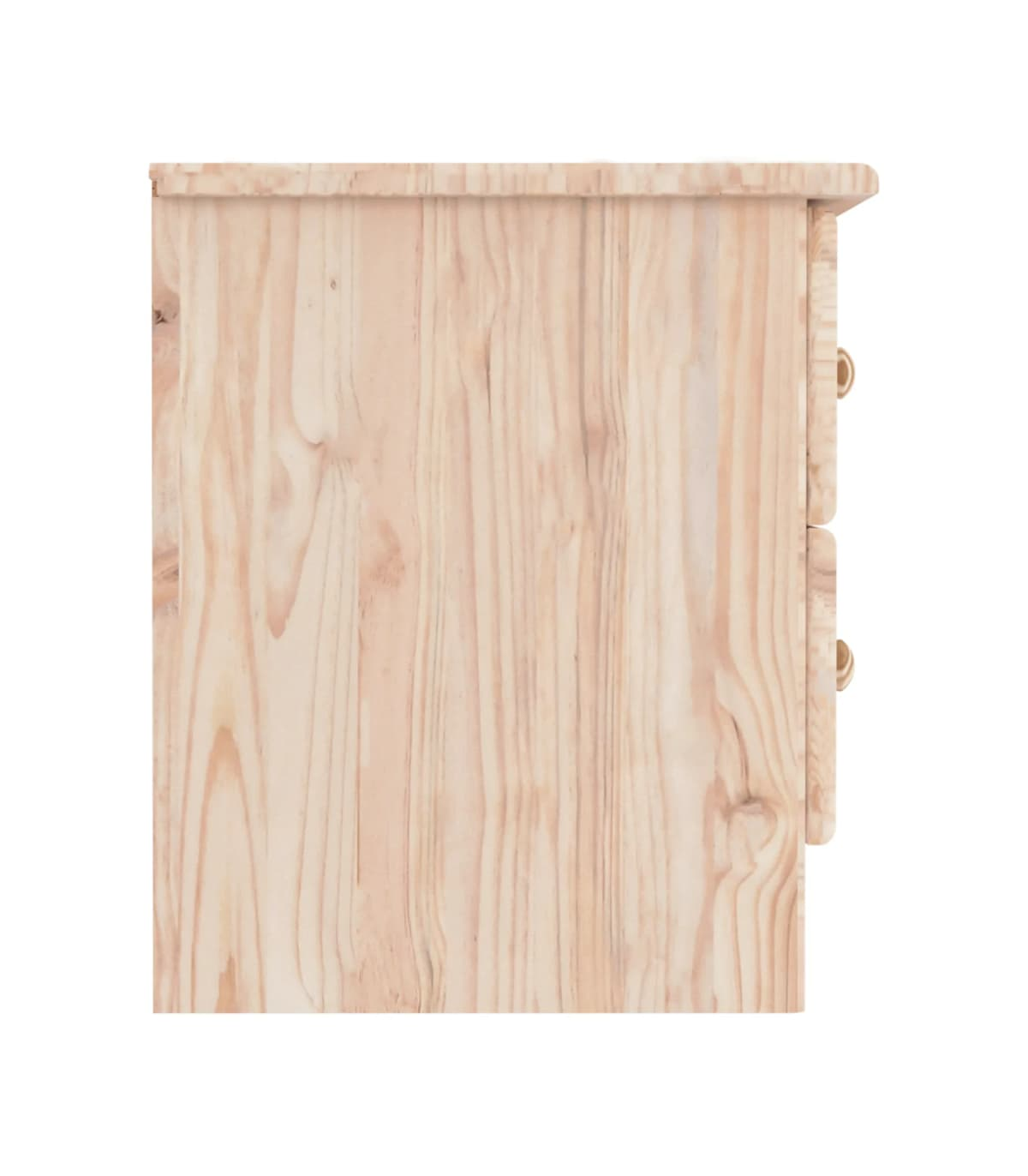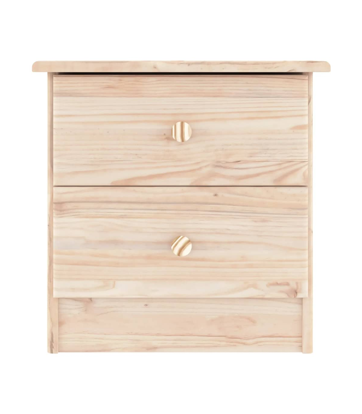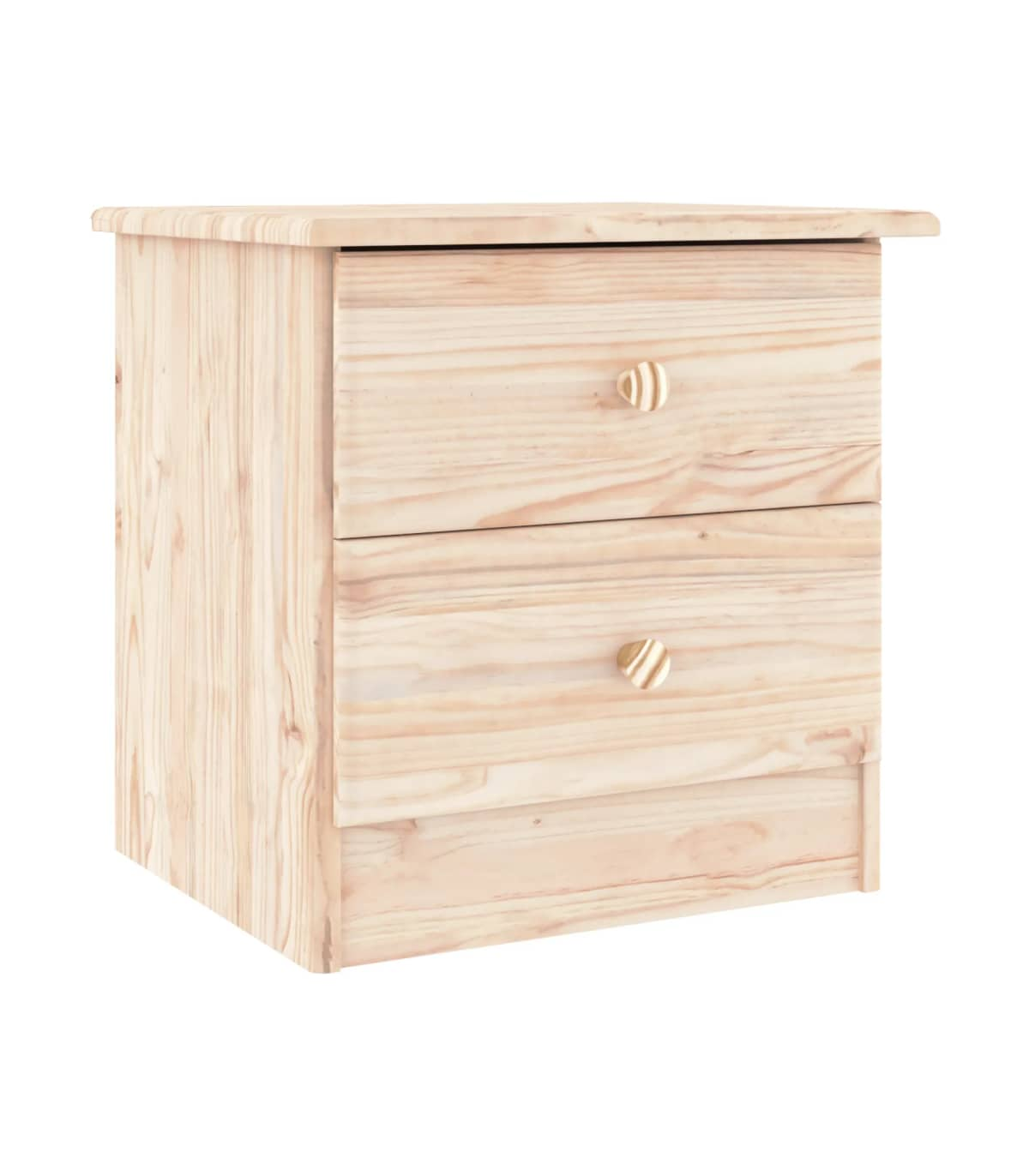 With a stylish design, this wooden bedside cabinet fits easily into your bedroom or living room and adds a timeless charm to your interior. Solid pine wood: Solid pine wood is a beautiful natural material. Pine wood has a straight grain, and the knots give the material its signature, rustic look. Made of solid pine wood, the bedside table is durable and sturdy.Ample storage space: The bedroom furniture features a convenient drawer and a compartment, helping keep your essentials close at hand.Easy to maintain: The bed side table is easy to clean with a damp cloth and requires less maintenance.Wooden knob: The bedside drawer comes with a wooden knob that makes it easy to open and close the bed table while also adding to extra beauty.Untreated surface: As the nightstand is crafted from solid pine wood with no finish, you can keep its natural colour, but also can paint or lacquer it as you prefer.