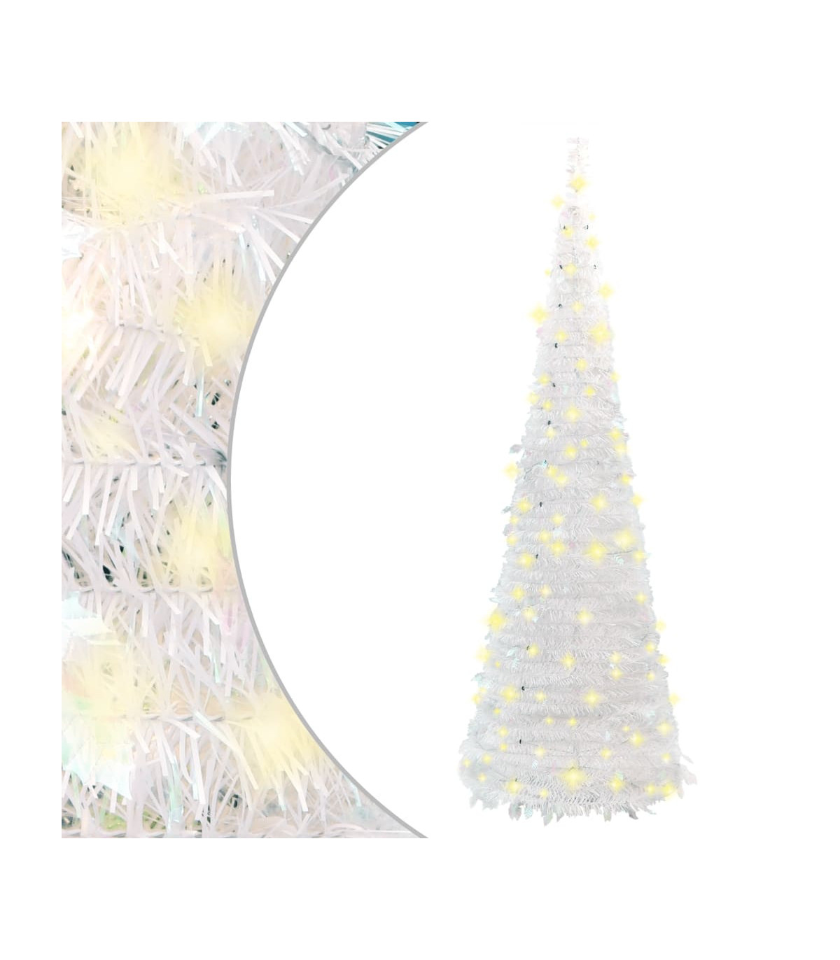 This beautiful artificial Christmas tree is very lifelike in its shape and appearance and is meant to create just the right atmosphere for this Christmas. 8 lighting modes: The Christmas tree has 8 different lighting effects (combination, in wave, sequential, slow glow, chasing/running water, slow fade, twinkle/flash, and steady on). You can switch the lighting modes by pressing the button on the USB to create different holiday atmospheres.Lifelike material: The Christmas decoration has realistic PVC tips, making the tree lifelike in its shape and appearance.Sturdy stand: The metal stand provides your Xmas tree with optimal sturdiness and stability.Economical choice: You can reuse the Christmas ornament every year, which is a cost-effective option compared to getting a real tree. Good to know:You can customise your Christmas tree by hanging the LED string light yourself, as they are provided separately.The product has a USB connector that requires a certified 5V USB power source (not included).Please ensure that the USB connection is plugged in a dry environment.
