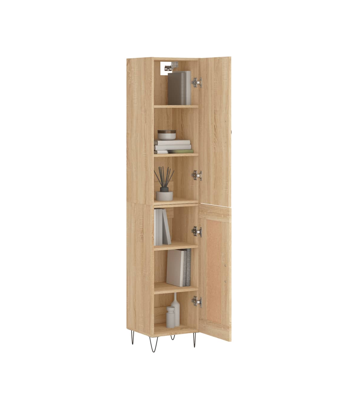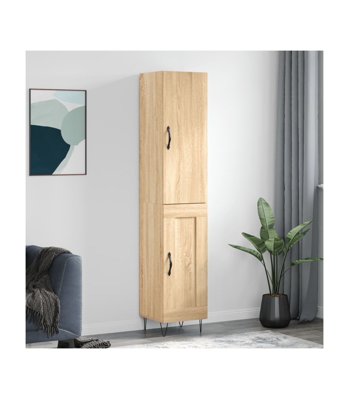Are you hunting for a stylish highboard? This highboard adds an elegant charm to your existing interior! Durable material: The engineered wood is of exceptional quality with smooth surface and also features strength, stability and resistance to moisture. Made of engineered wood, the storage cabinet is sturdy and durable. Metal feet: The metal feet add a modern and calm style to your interior while ensuring stability. Ample storage space: The sideboard offers ample storage space for keeping your various daily essentials well organised and within easy reach. Practical door: Keep your essentials free from dust by hiding them behind the door of the side cabinet. Warning:To prevent it being overturned, this product must be used with the provided wall attachment device. Good to know:Screws and plugs for inside the wall are not included. We advise to find and use screws and plugs suitable specifically for your walls. If you're not sure, you can consult with a professional. Please read and follow each step of the instructions.