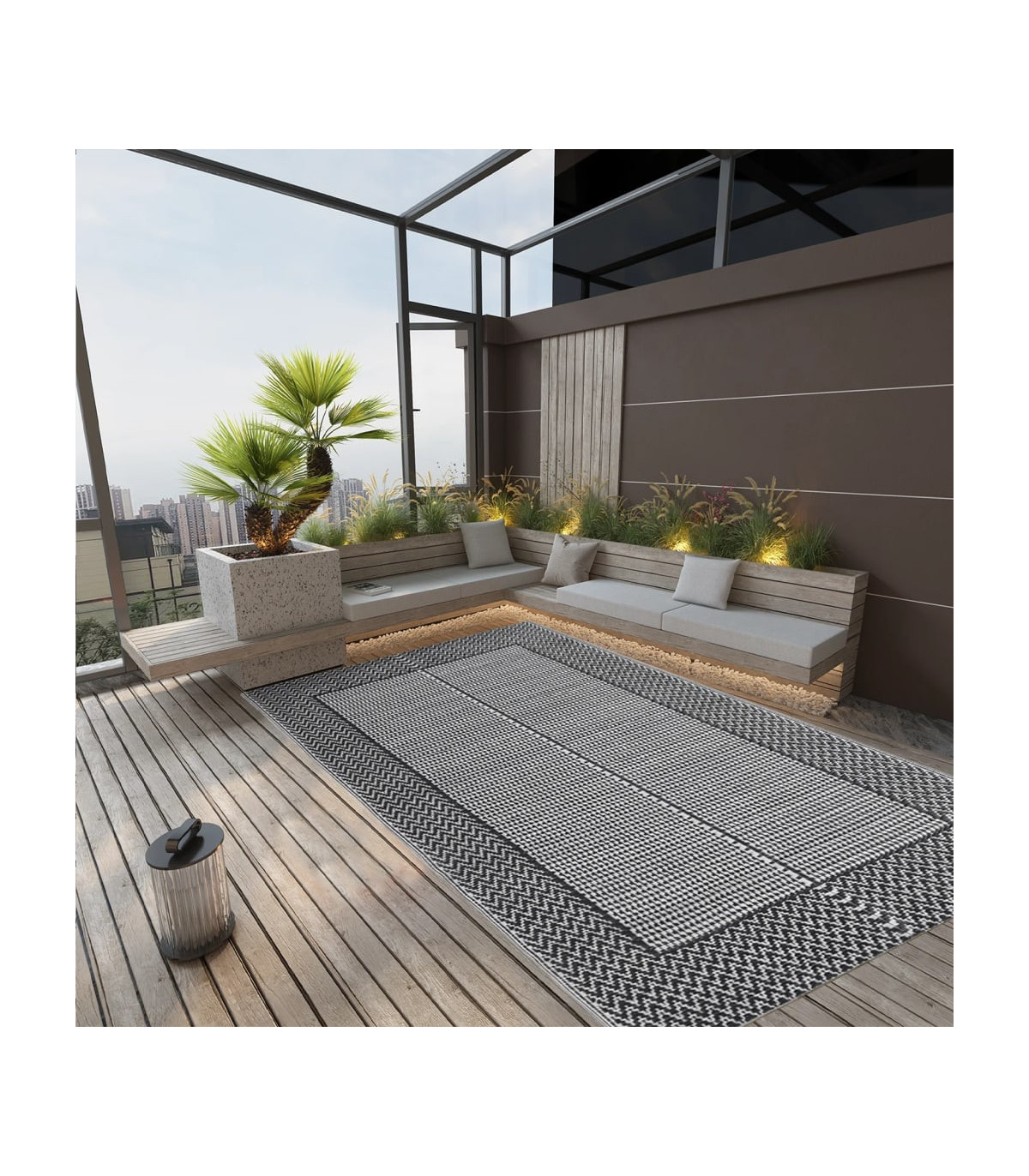 This trendy outdoor carpet makes a great decorative addition to your outdoor living space! Place it in your seating area on your balcony, terrace and patio to instantly make it feel more homely. Long-lasting and UV-resistant: Made of Polypropylene (PP), this rug is tightly woven for durability, portability and low maintenance. And it‘s UV-resistant, which prevents it from fading or getting other sun damage.Reversible design: Designed to be used on both sides, this garden rug has two options for you to match the decor to your liking. When one side has a stain, or you get bored with the pattern, you can replace the other side to give the ground a fresh look.Easy to clean: This outdoor carpet is easy to clean. Simply shake and wipe it with a damp cloth, or rinse it with a hose and air dry.Portable and easy to store: Due to the lightweight and seams in the middle, you can freely fold or unfold the carpet into an ideal shape for easily carrying and storing when not in use.Wide applications: This area rug is suitable for indoor and outdoor use, including the deck, patio, balcony, garden, terrace, etc. Good to know:For optimal durability and beauty, we suggest hand washing your outdoor rug at room temperature.