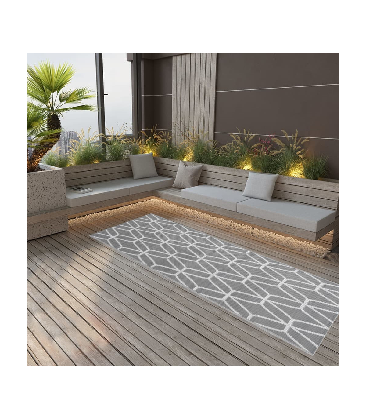 This trendy outdoor carpet makes a great decorative addition to your outdoor living space! Place it in your seating area on your balcony, terrace and patio to instantly make it feel more homely. Long-lasting and UV-resistant: Made of Polypropylene (PP), this rug is tightly woven for durability, portability and low maintenance. And it‘s UV-resistant, which prevents it from fading or getting other sun damage.Reversible design: Designed to be used on both sides, this garden rug has two options for you to match the decor to your liking. When one side has a stain, or you get bored with the pattern, you can replace the other side to give the ground a fresh look.Easy to clean: This outdoor carpet is easy to clean. Simply shake and wipe it with a damp cloth, or rinse it with a hose and air dry.Portable and easy to store: Due to the lightweight and seams in the middle, you can freely fold or unfold the carpet into an ideal shape for easily carrying and storing when not in use.Wide applications: This area rug is suitable for indoor and outdoor use, including the deck, patio, balcony, garden, terrace, etc. Good to know:For optimal durability and beauty, we suggest hand washing your outdoor rug at room temperature.
