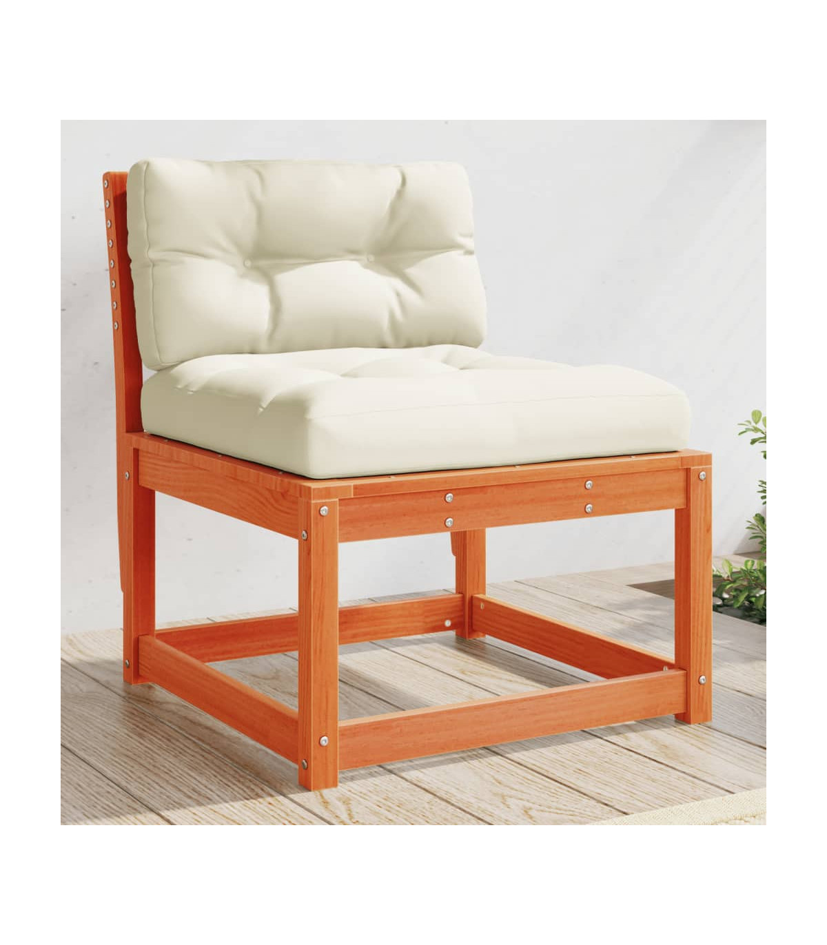 This wooden garden sofa will make a great addition to your garden, terrace, or patio for chatting with family and friends or just enjoying the weather. Solid pine wood: Solid pine wood is a beautiful natural material. Pine wood has a straight grain, and the knots give the material its signature, rustic look. Made of solid pinewood, this armless sofa is durable and stable.Comfortable seat experience: The backrest adds extra seating comfort for the garden sofa chair.Slatted design: The slatted design of the outdoor sofa effectively prevents water from pooling, ensuring that the seat remains dry and free from potential rot.Modular design: This single sofa features a modular design, making it completely flexible and easy to move around to suit any setting. You can combine it with other modular segments available in the drop-down menu to create your own personal garden lounge set configurations! Good to know:To make sure your outdoor furniture stays beautiful, we recommend protecting it with a waterproof cover.