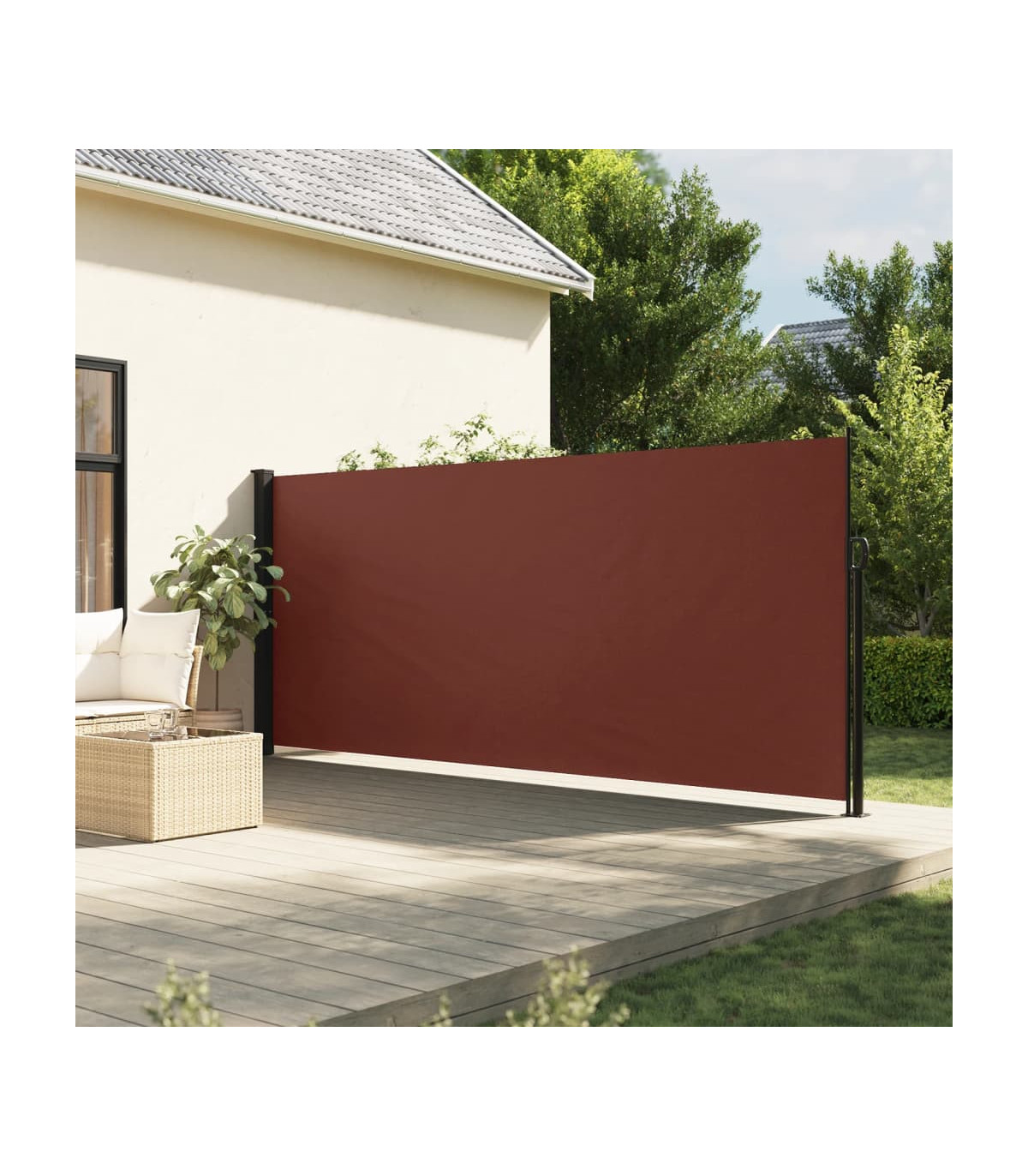 Create an instant and private oasis on your balcony, terrace, or patio using this retractable side awning! Water and UV resistant: This garden privacy screen is made from 100% polyester with a polyurethane (PU) coating, providing good breathability and excellent protection against wind, sun, water, and UV light.Convenient design: Thanks to its retractable design, the garden screen automatically rolls back when you remove the handle from the post.Easy installation: The two posts can be easily fixed to the wall and ground for added stability and safety using the included mounting accessories.Wide applications: This versatile side awning can be used in a variety of settings, both outdoors like backyard, terrace, garden, porch, balcony and indoors such as office, clinic, studio, dressing room, to create extra wall space as required.
