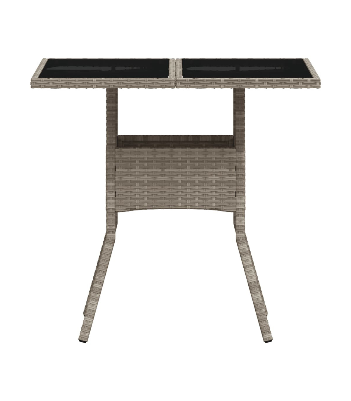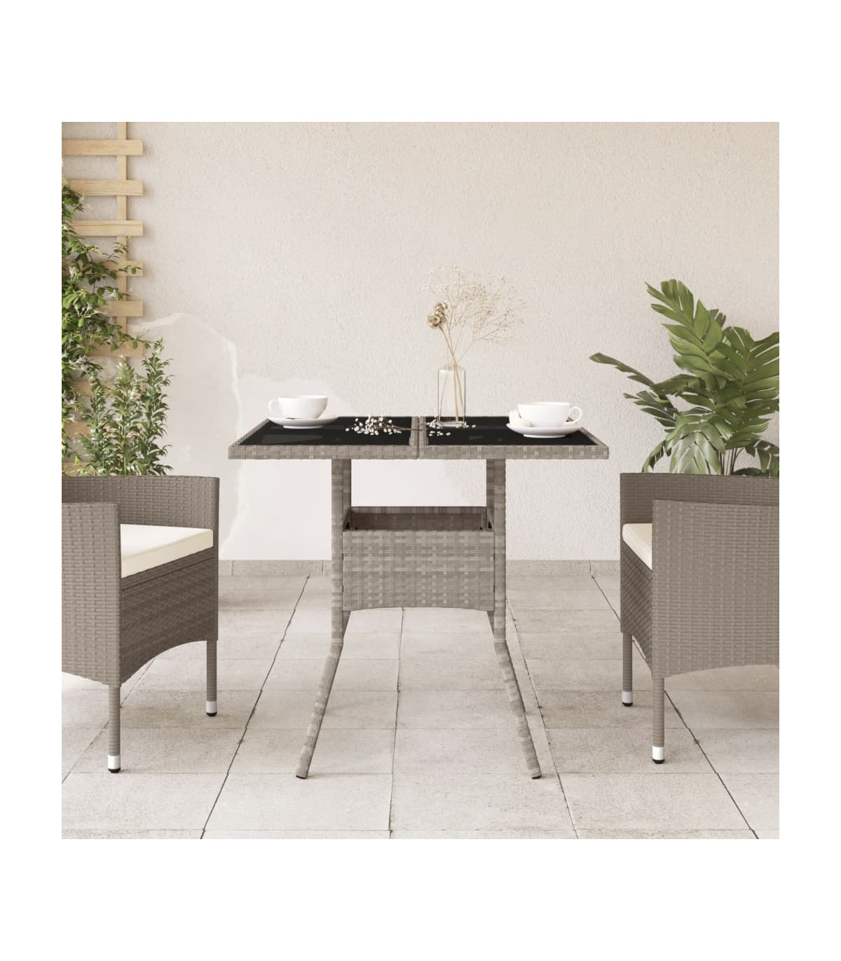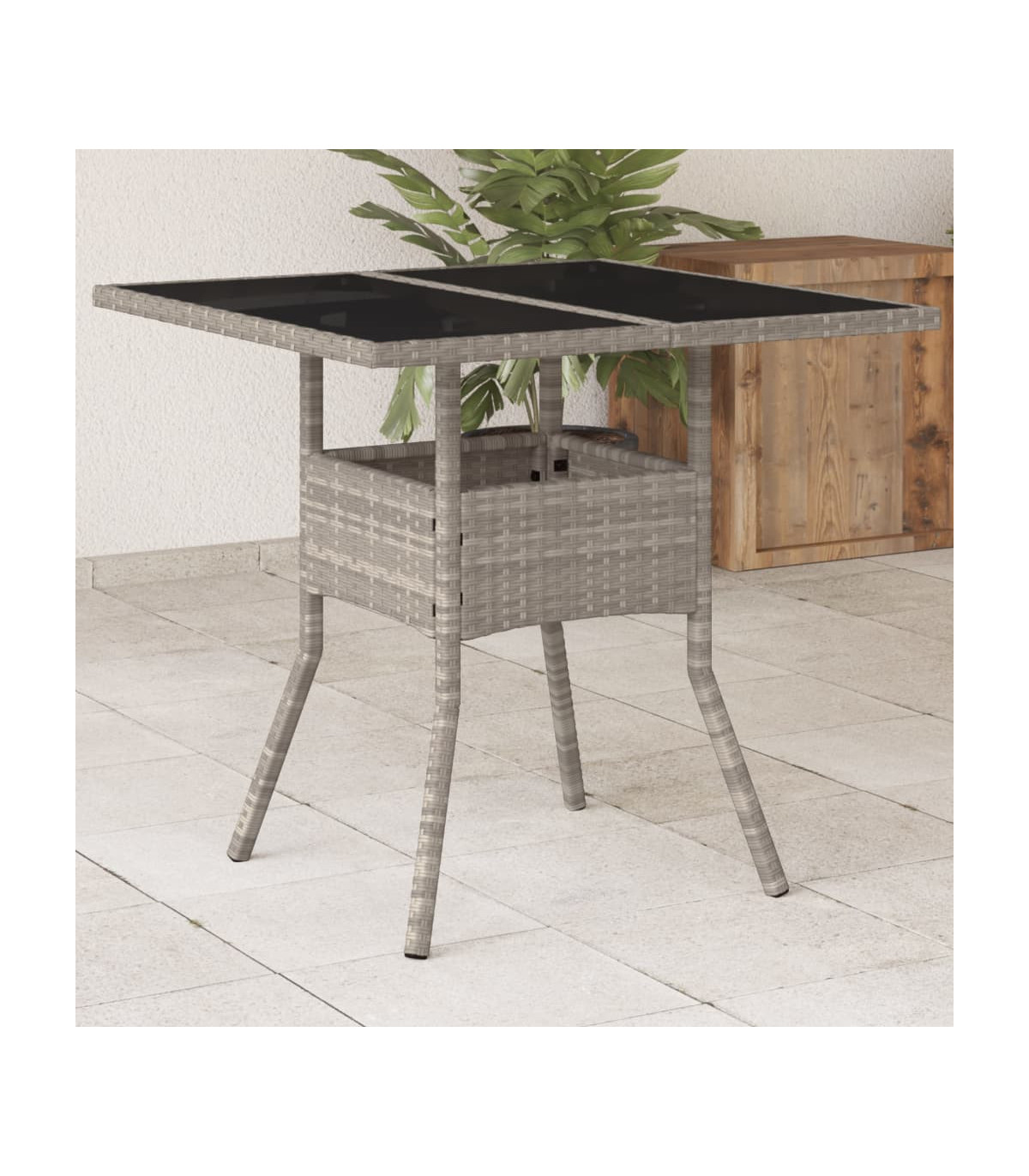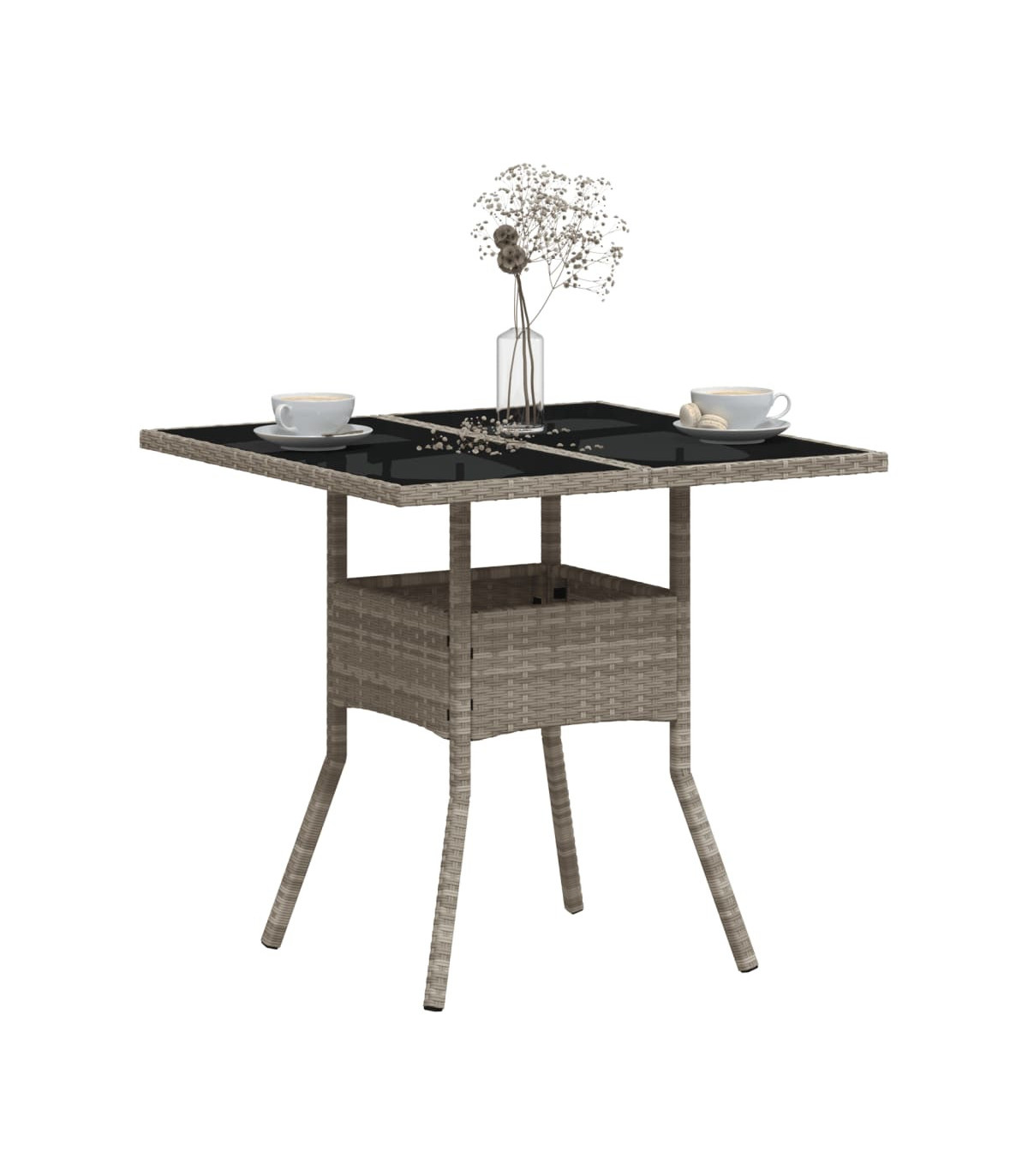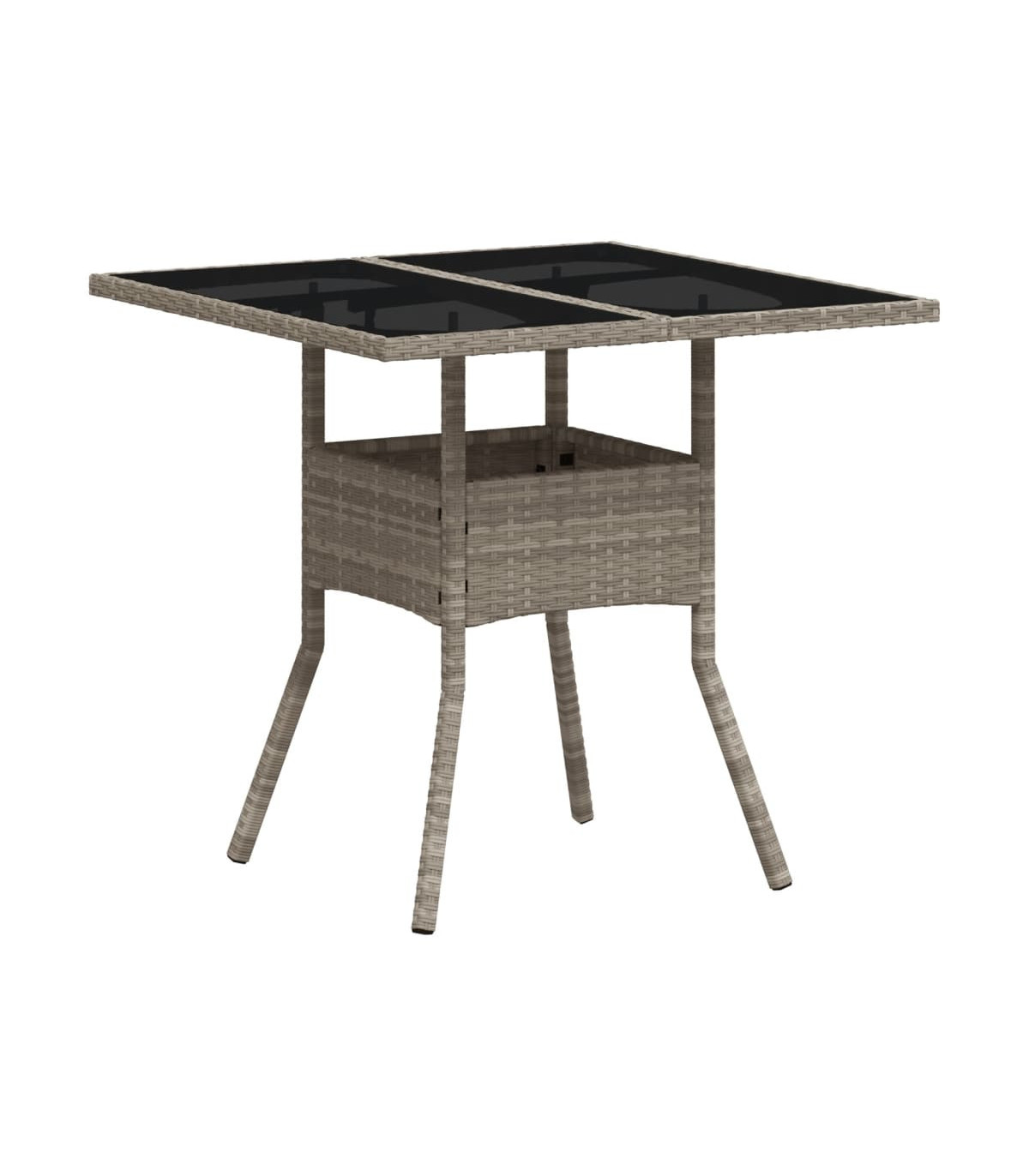 vidaXL Garden Table with Glass Top Light Grey 80x80x75 cm Poly Rattan