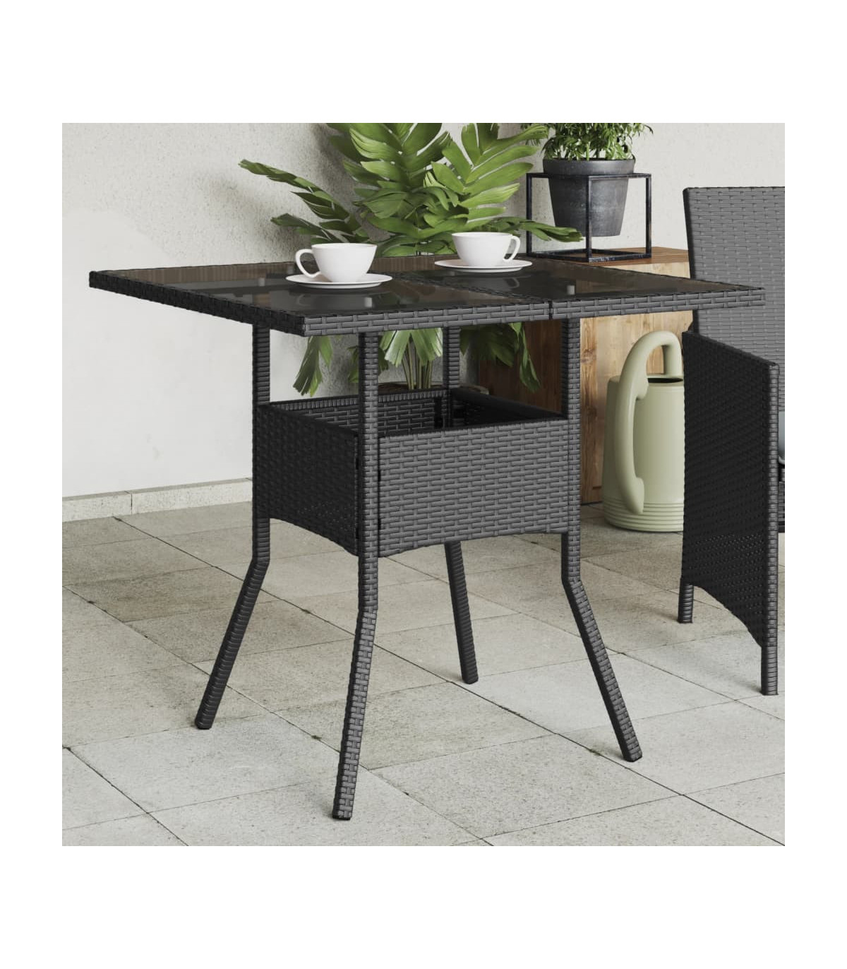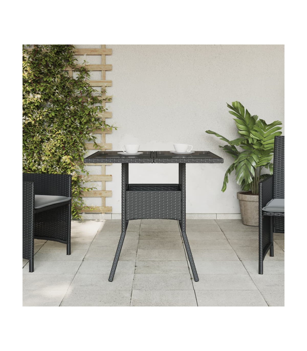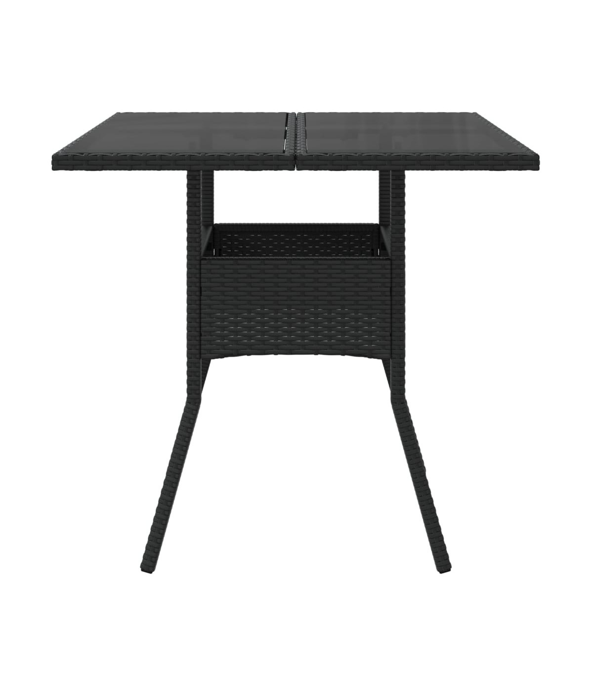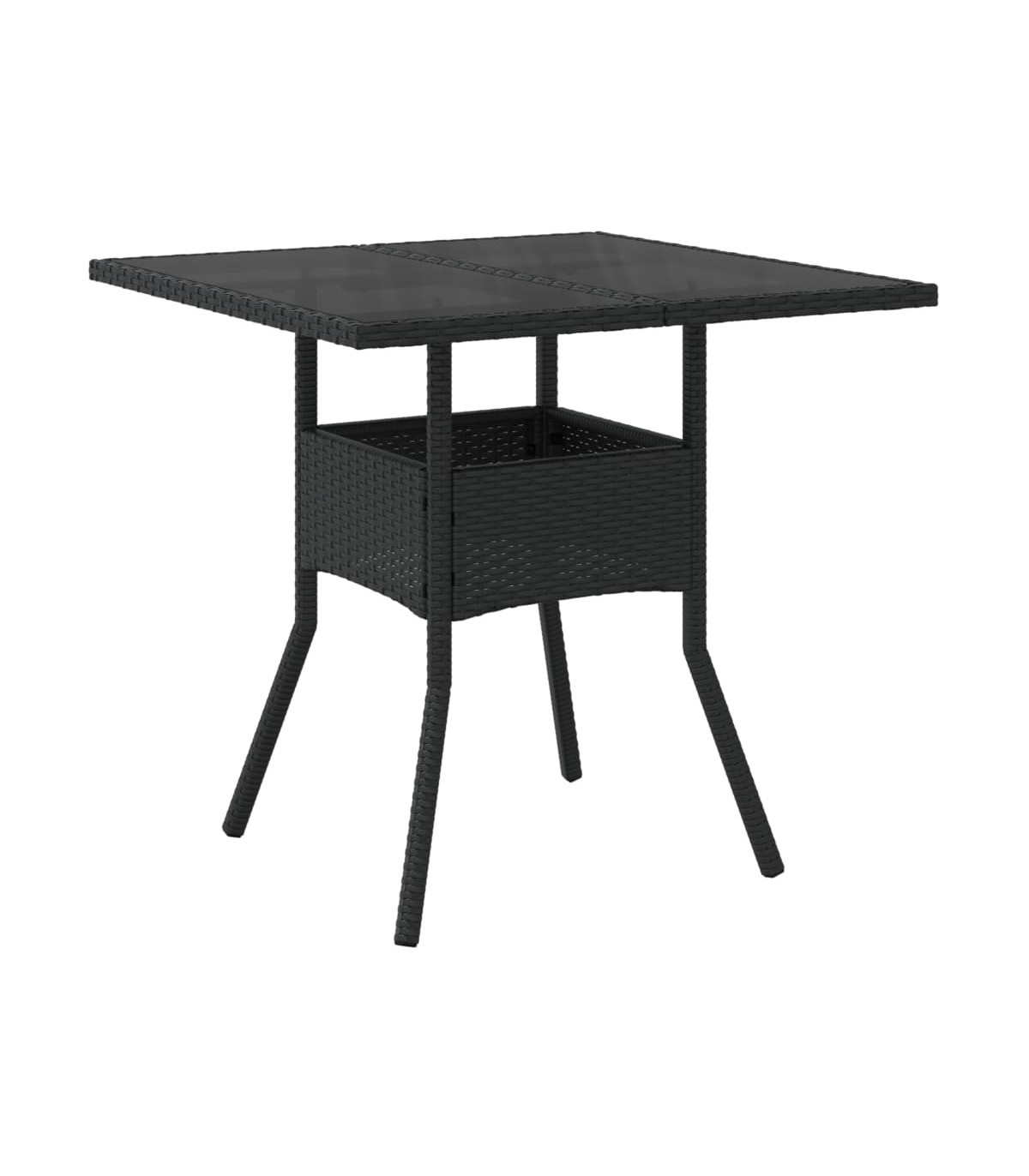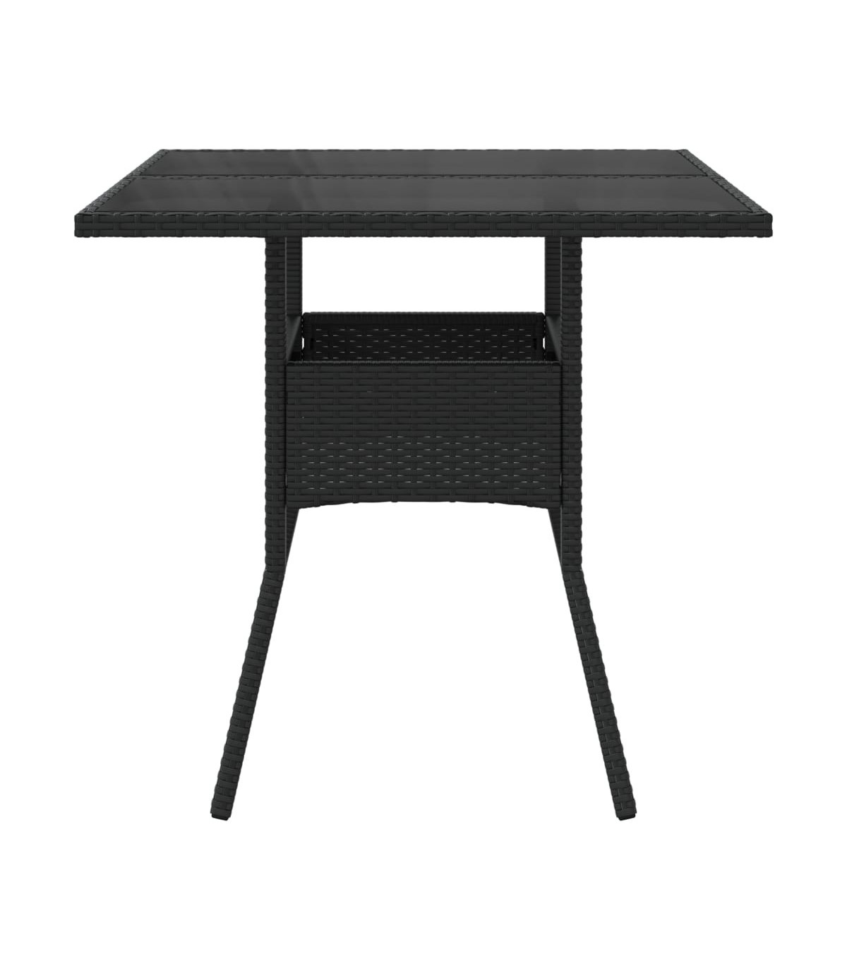 vidaXL Garden Table with Glass Top Black 80x80x75 cm Poly Rattan