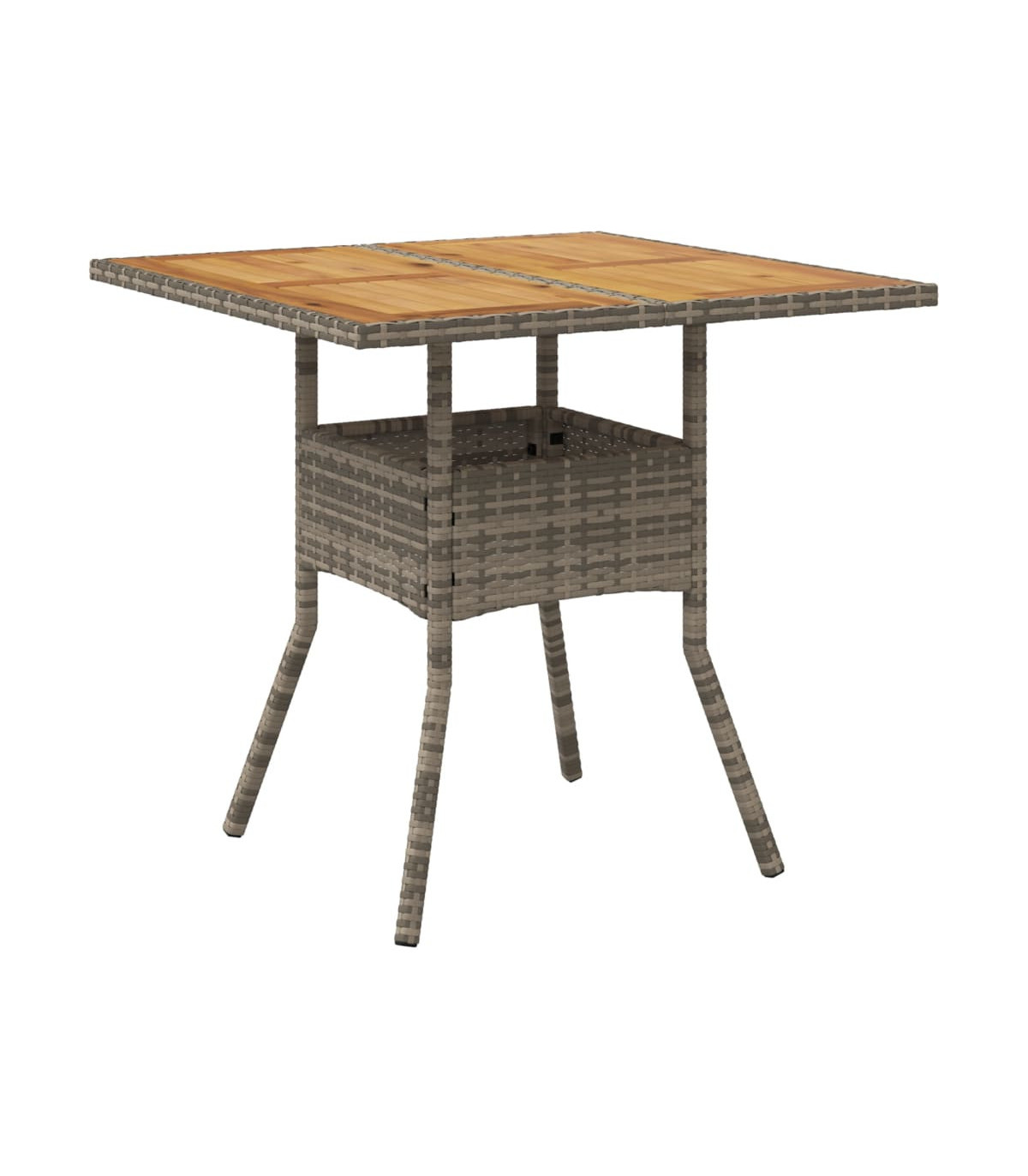 - Material: PE rattan, powder-coated steel, solid acacia wood with an oil finish