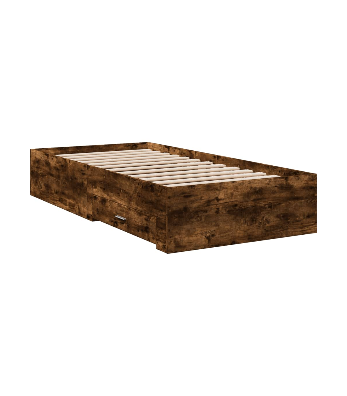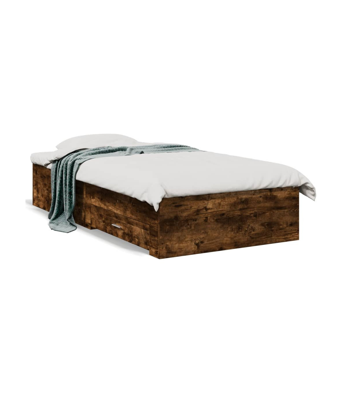 vidaXL Bed Frame with Drawers Smoked Oak 75x190 cm Small Single Engineered Wood