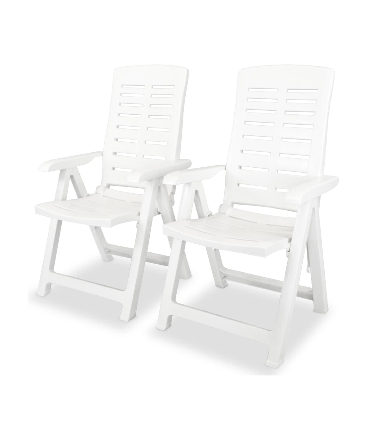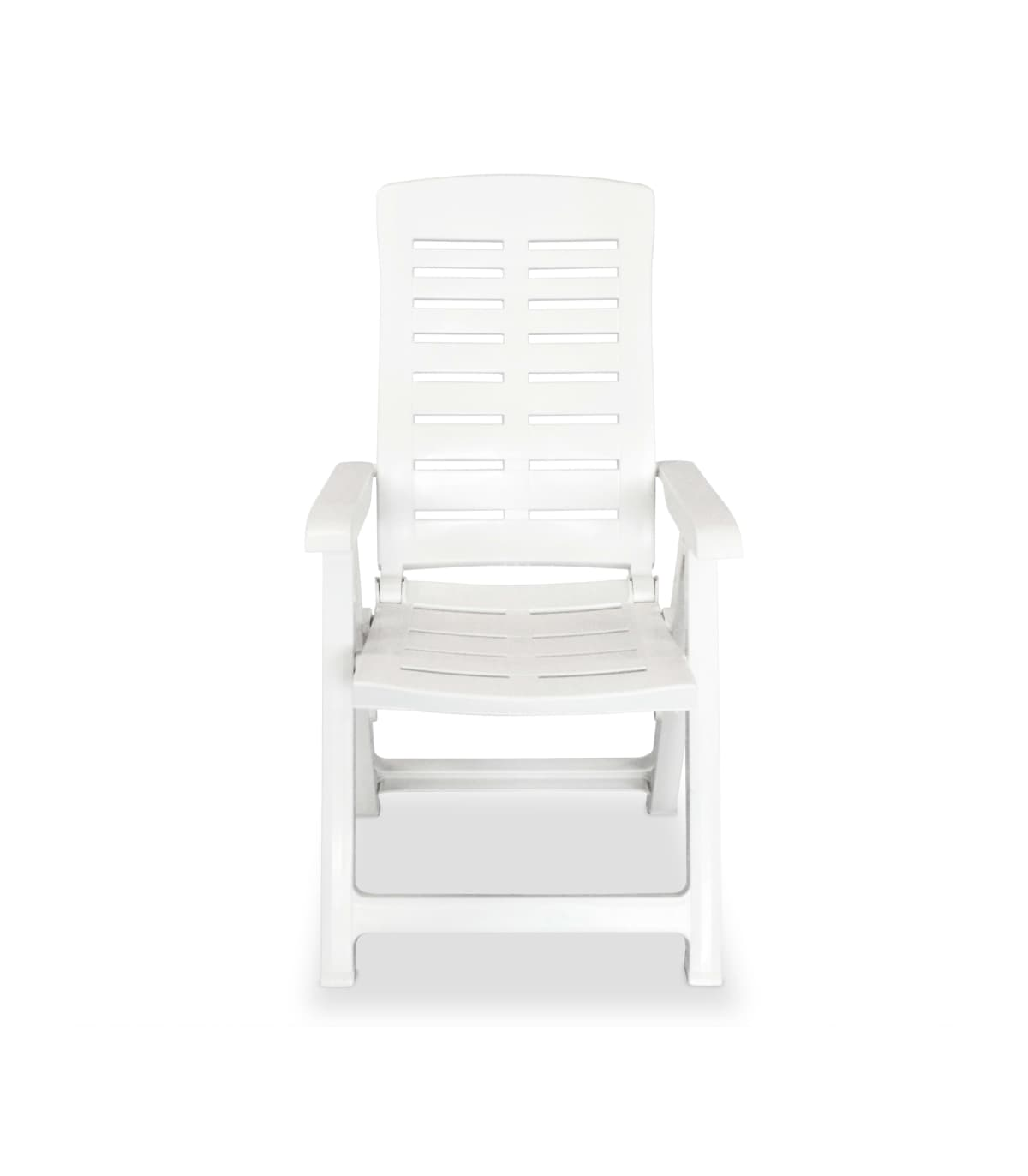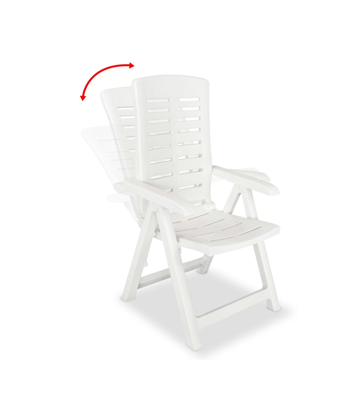 These weather-resistant garden chairs will make a great addition to your garden or patio. They are ideal for chatting with family and friends or just enjoying the weather. The reclining chairs are made of durable plastic, which makes them weather resistant and easy to clean. The chairs' backrests have 4 reclining settings, so you can always find the most comfortable position. They are also lightweight, which makes them easy to move around. The chairs can be folded to save space when not in use. Delivery includes 2 chairs.