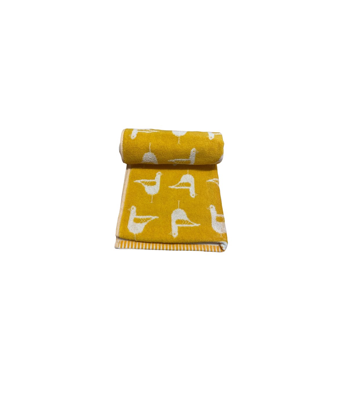 A 100% Turkish cotton jacquard towel with a seagull design on a coloured background.