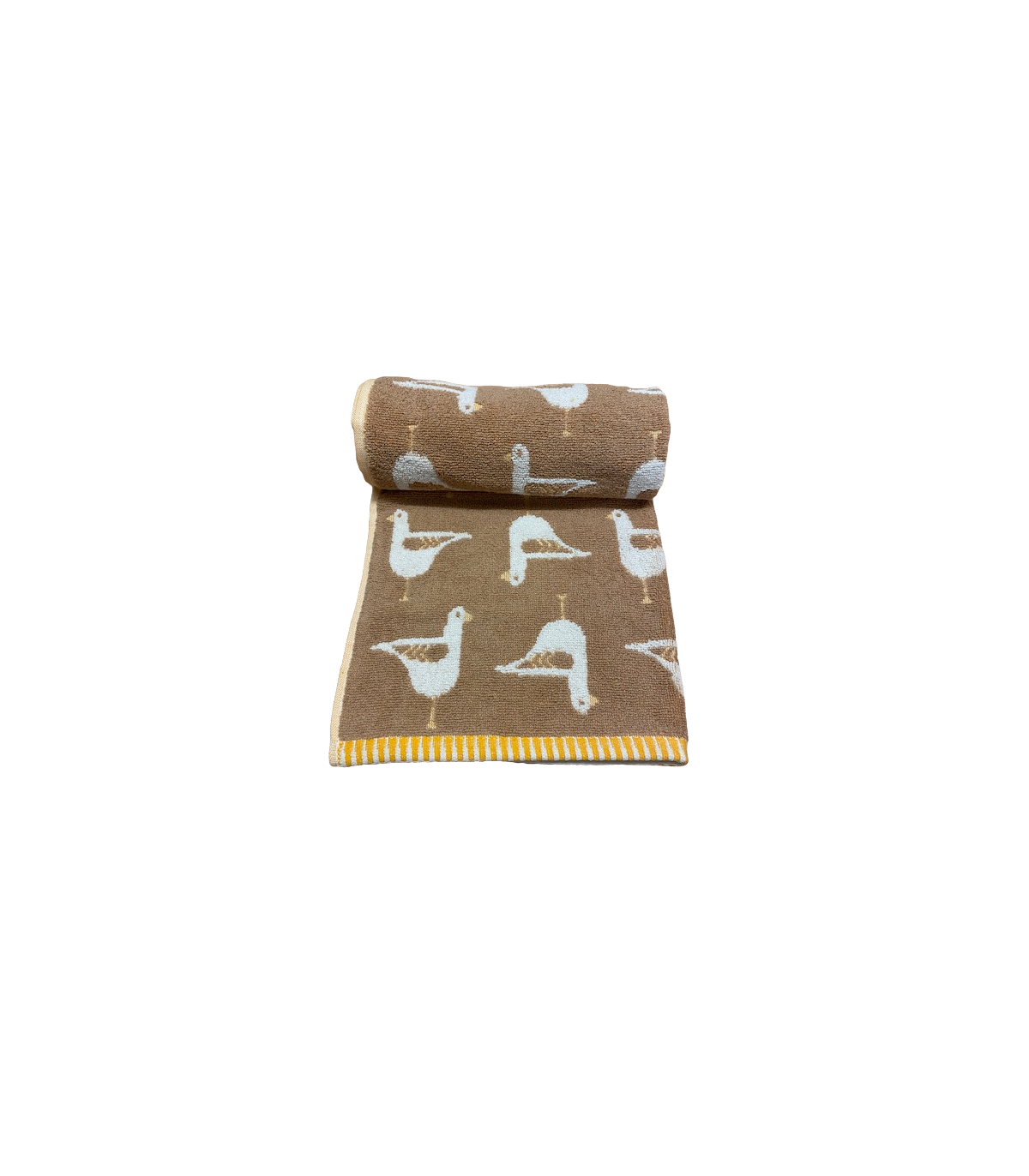 A 100% Turkish cotton jacquard towel with a seagull design on a coloured background.